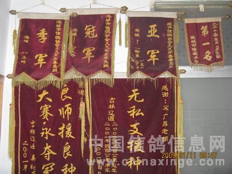 09年1月11日。很长时间没有看到宋大哥,乘车2个小时来到海城,海城具有两千年文明古城,也是闻名全国“水果称赞为王—南国梨之乡”这里曾经是我当兵的地方,说起来宋大哥为人实在,广交天下鸽友,在赛鸽运动,每年佳绩皆传,08年辽宁海城名洋公棚春季获5。15名,团体第四名