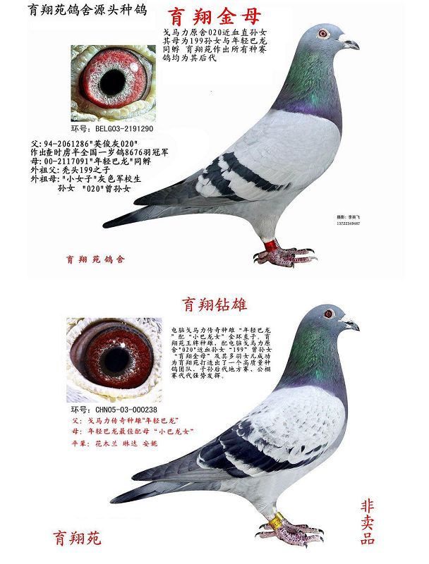 育翔苑鸽舍2003年建棚,04年开始参加地方赛,05年开始参加公棚赛。主攻幼鸽赛。主力鸽系:电脑戈马力,辅助鸽系:原舍瓦特、原舍福禄英格斯、高品质穆力门等。多年来以戈马力“020”血系、“年轻巴龙”血系为主干,反复近血杂交筛选。赛鸽整体表现早熟、快速、耐翔。在赛事中多次获得梦幻成绩。育翔苑鸽舍愿和天下痴迷赛鸽运动的鸽友交流、共进、拓展。 最新梦幻连队:11年秋500公里幼鸽特比购环40枚、每10枚为1团体资格。获得 冠军 亚军 4名 5名 6名 8名等共入赏17羽。团体:冠军 亚军 季军 殿军 500公里普赛:冠军 亚军 季军 10名 11名13名 15名 16名等 团体冠军(超出亚军13羽)
