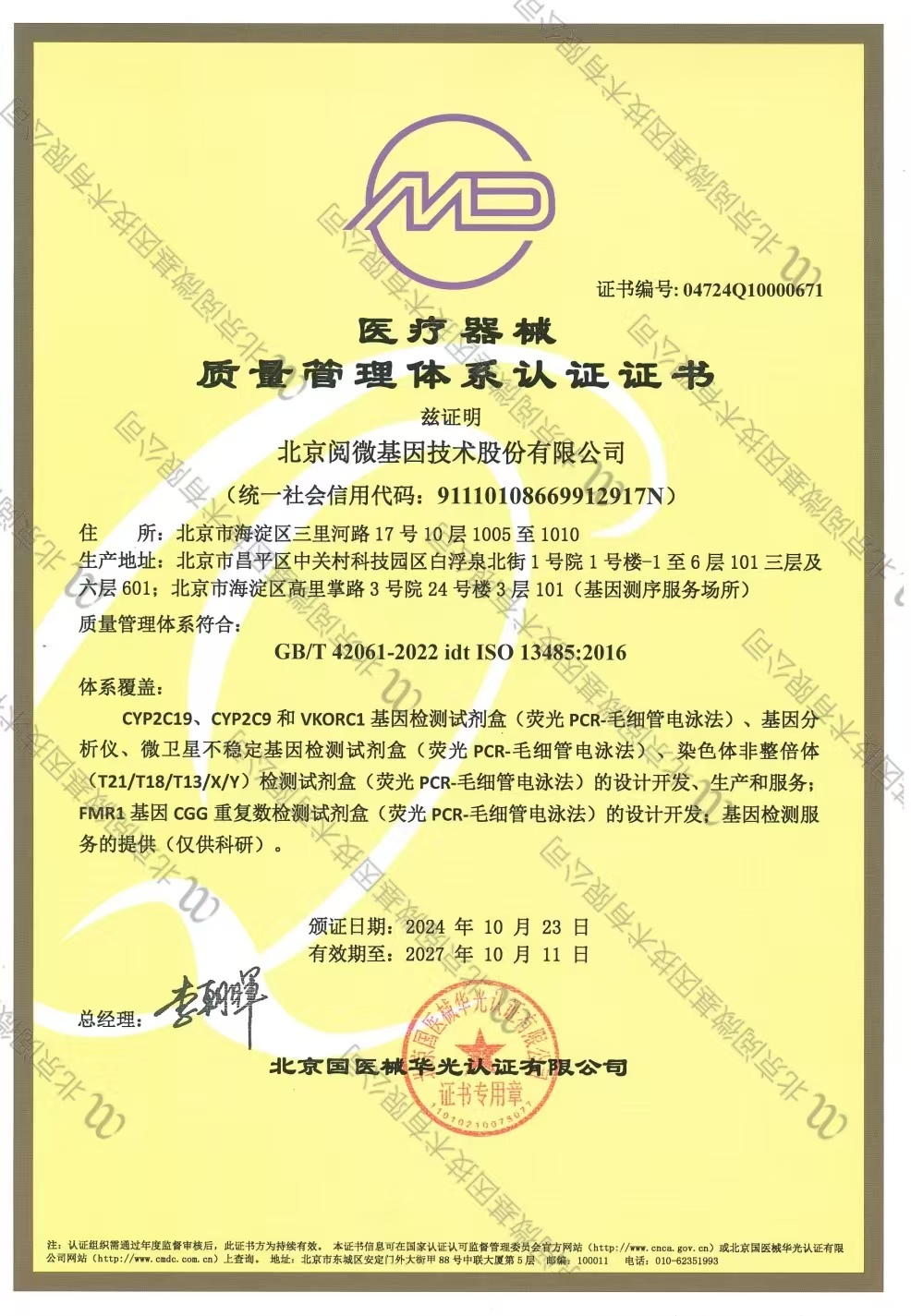 阅微科技获得医疗器械质量管理体系认证证书
