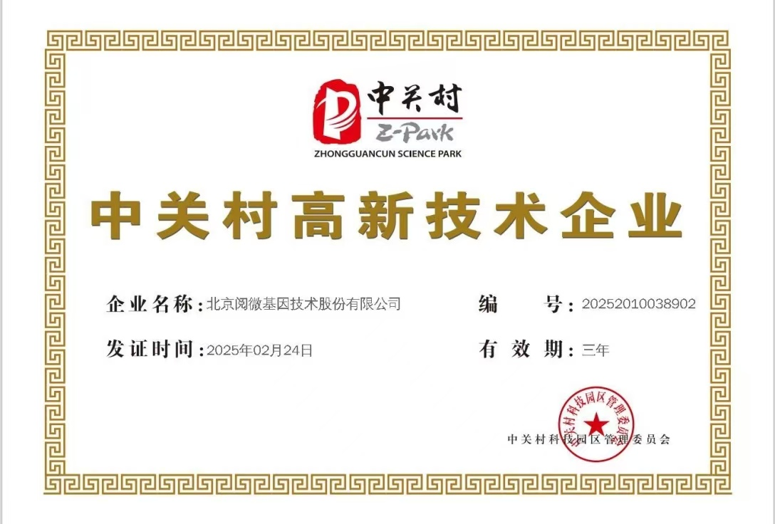 阅微科技获得北京中关村高新技术企业荣誉称号