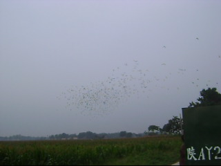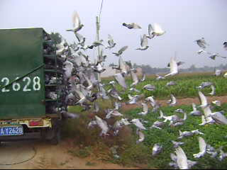 8点整准时开笼,归心似箭赛鸽们向着家的方向飞去。