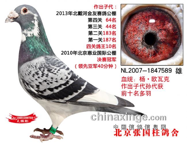 此时2016年1月9日北京东方寰宇赛鸽公棚决赛冠军,2016年1月14日北京卓越星赛鸽公棚决赛冠军,指定鸽6项冠军,为杨·欧瓦克孙代所获。由此可见,杨·欧瓦克所作出的每一场骄人的成绩,一直让张国柱感到自豪。