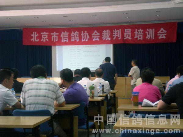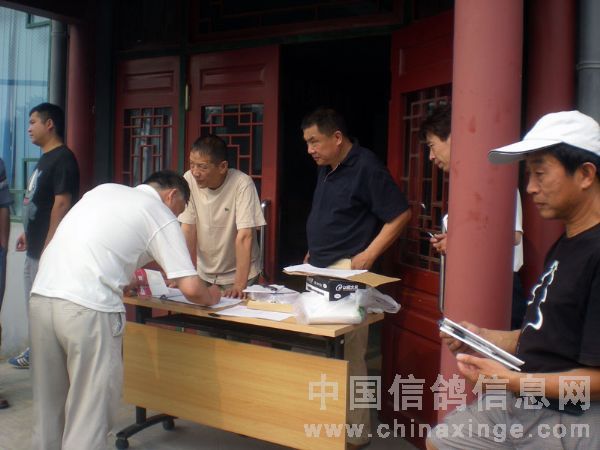 市鸽协裁判培训签到处,负责签到的两位领导竞翔部主任、裁判长