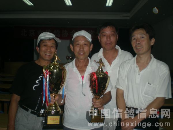 鸽会领颁发:市十八区联翔奖杯,朝阳、大兴、崇文。分获冠、亚、季军。