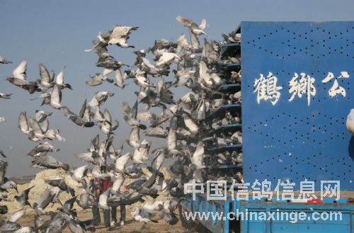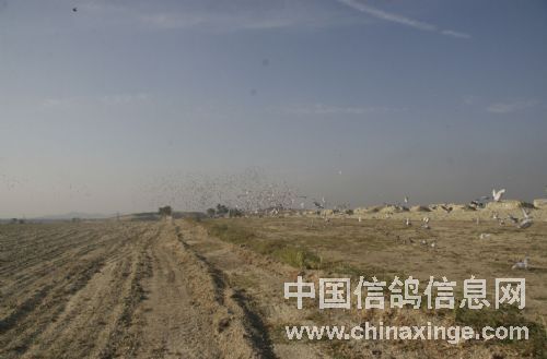 2007年9月8日早辽宁盘锦鹤乡公棚训放来到黑山县境内,公棚总经理房浩亲自前来,同时和黑山县信鸽协会秘书长王永波,北宁市信鸽协会秘书长常青等人参加开笼训放,由当地鸽会裁判选择开阔的司放地点,训放当日天气晴,赛鸽走势良好.