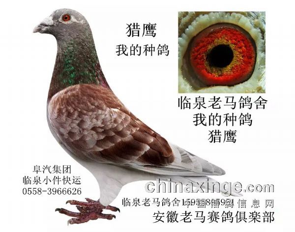 这只是说的一般情况,有一般就有特殊的。这个特殊我举个例子是:赛鸽天地的第66期,彩页广告的部分,有湘闽鸽舍登的赛鸽,铁翼飞奴,CHN32-2006-628557是红轮黄眼雌鸽。其父是剑客金公,CHN2000-001836,雨点白条砂眼,其母是湘闽303,CHN18-2004-000303,绛砂眼。这里面有两个特殊,第一,按说绛母配非绛公出的子代绛鸽应该是公,而铁翼飞奴却是个在湖北中佳公棚决赛4名的雌鸽。第二个特殊,我在网上看到过无数次几个高手名家抬杠,基本大多数鸽友认为黄眼配黄眼可以出砂眼,而砂眼配砂眼不可能出黄眼,而铁翼飞奴的父母都是砂眼,铁翼飞奴却是黄眼。其实这个配对还有一个不一般,父亲是偏深的雨点白条,母亲是绛雨点,铁翼飞奴却是红轮。