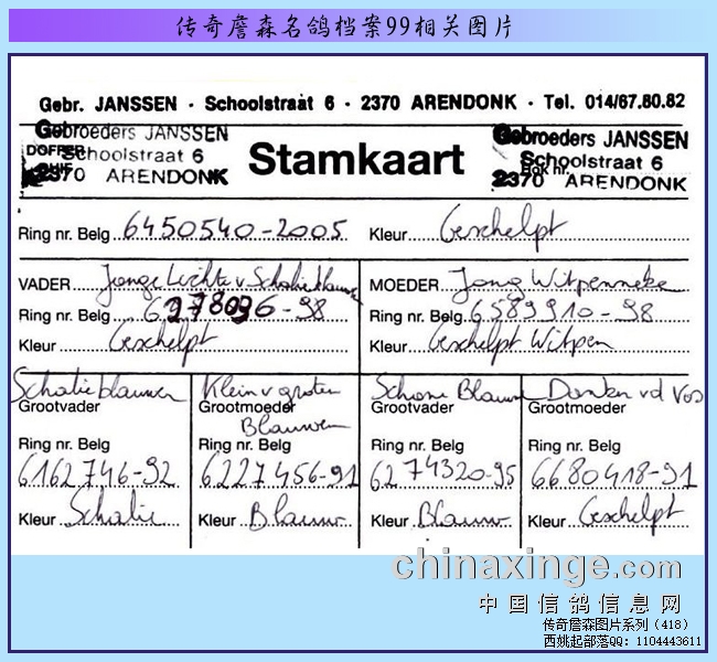 这羽鸽子的血统书从笔迹上来看不是詹森兄弟所写的血统书。