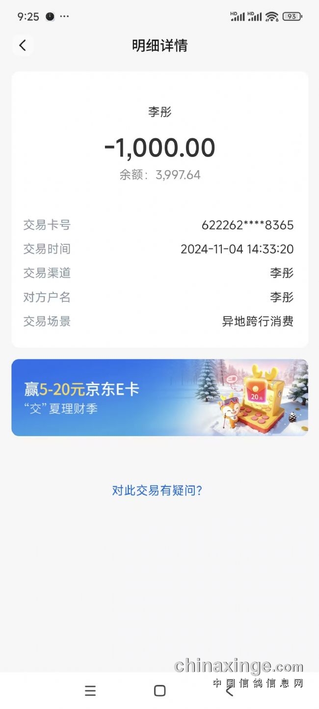 所以以后收公棚的退款和奖金的时候,留个心眼,尽量收微信支付宝或者不常用的银行卡。我的农行卡还是比较常用的,被风控会产生很多不便。