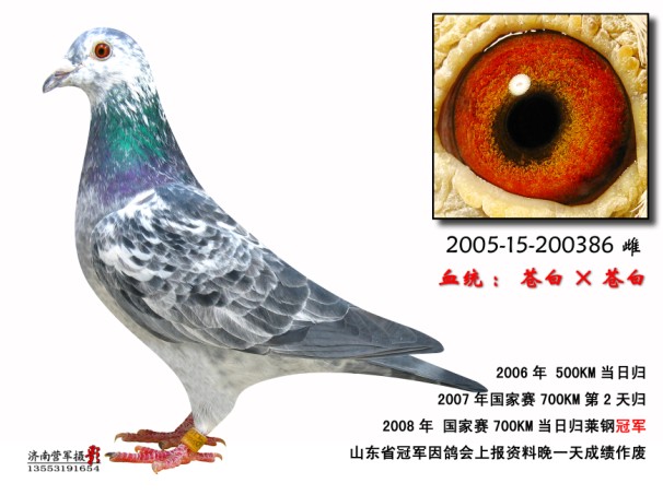 本人养鸽子15年了.以前的好成绩代表过去,不再列举,把最近几年的成绩和鸽友分享一下: 获得2007年第八届国家赛武汉- 莱钢700公里当日归冠军,亚军,当日仅归2羽,山东省排名第13,14的好成绩. 2008年在莱芜430公里获得普赛亚军……