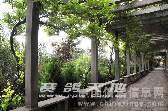 图:处于鸽舍后的由金银花、蔷薇、紫藤等近200米绿色长廊组成天然氧吧
