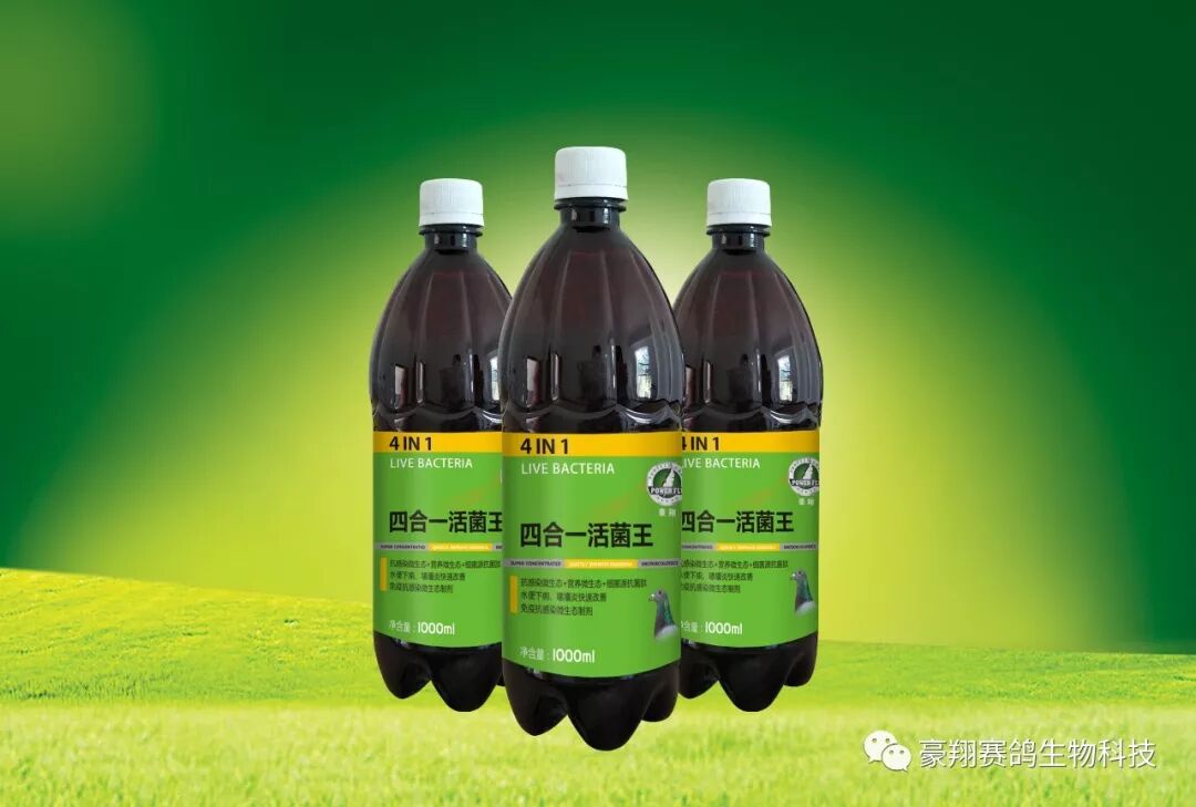 当赛鸽出现下痢、水便、消化不良、免疫力低时,适当补充足够的益生菌----四合一活菌王,便可协助体内菌群平衡,以产生自体防御机制,对抗外来细菌、病毒的感染,让鸽体重现健康状态。