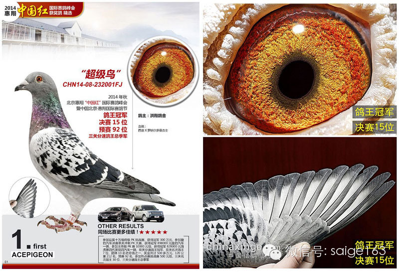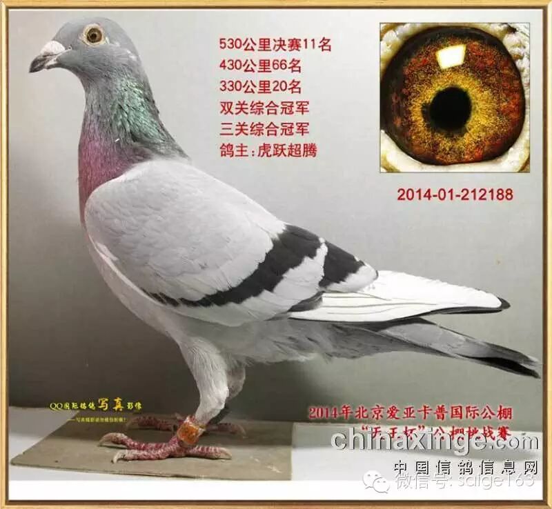 3、北京虎跃超腾鸽舍的01-212188灰花鸽,以热身赛330公里20名、预赛430公里66名、决赛530公里11名的好成绩包揽三关综合鸽王、双关综合鸽王双料冠军。