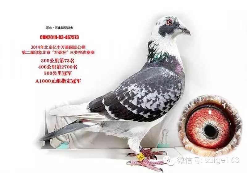 河北超亚鸽舍14-03-467573雨花冠军鸽眼。