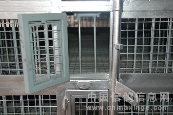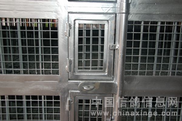 此鸽笼样式新颖、方便上锁,装鸽孔面有4根立式保险杠,从上到下可以分4排分别上锁,有鸽会掌握,开笼放鸽面只有1把锁,只要打开赛鸽全部逃笼,可以避免训放人员有嫌疑。