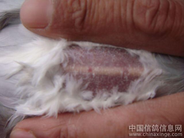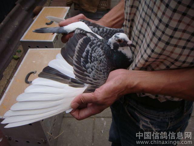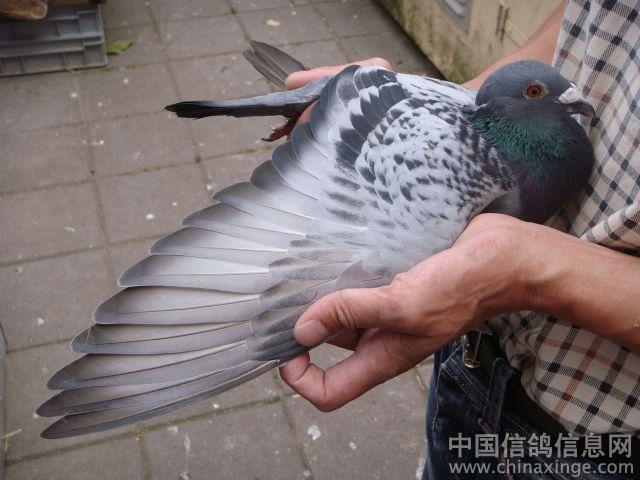 | | 这羽己掉了一根条,到了9月12日秋赛比完,鸽棚关灯立刻倒毛换条,12月中能全部到好.这羽是佛科克送给我比赛的原棚幼鸽. | |