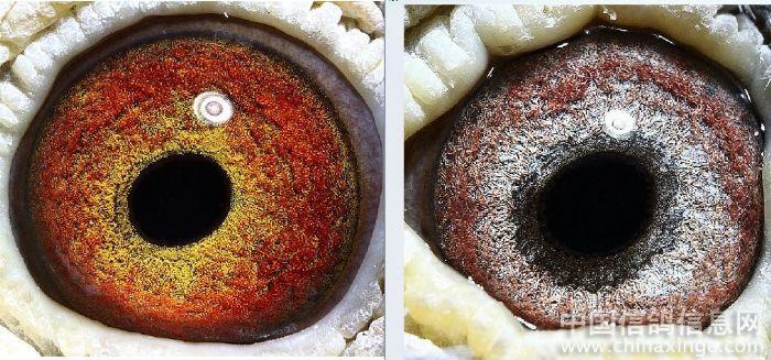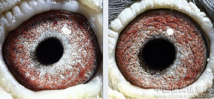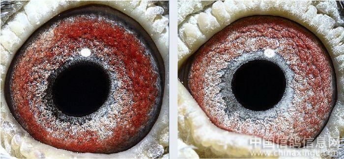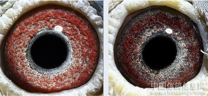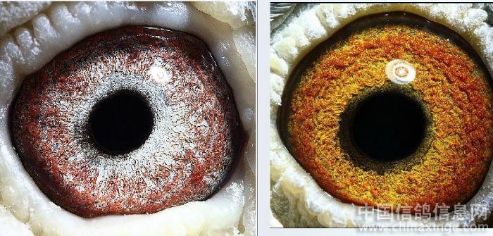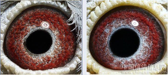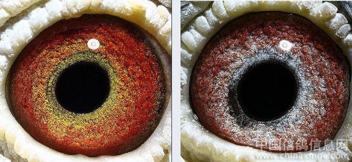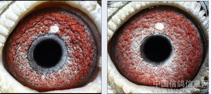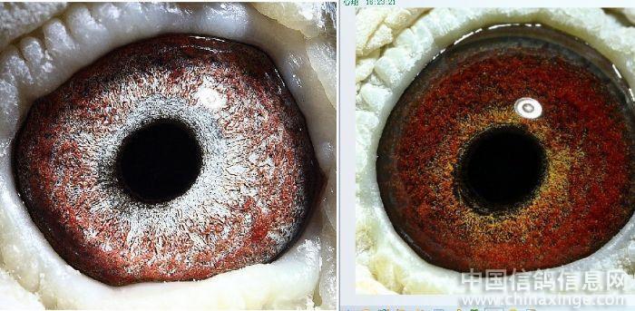 13. 它是一只外线口是全线口,颜色是微绿,前宽后窄,底砂黄,面砂不规则且红,以瞳孔为中心放射状极好,透气性较好,外封砂较宽呈微绿,脚砂起毛,瞳孔椭圆前倾,标准的晴天、多云快速鸽的特点。不能作种。