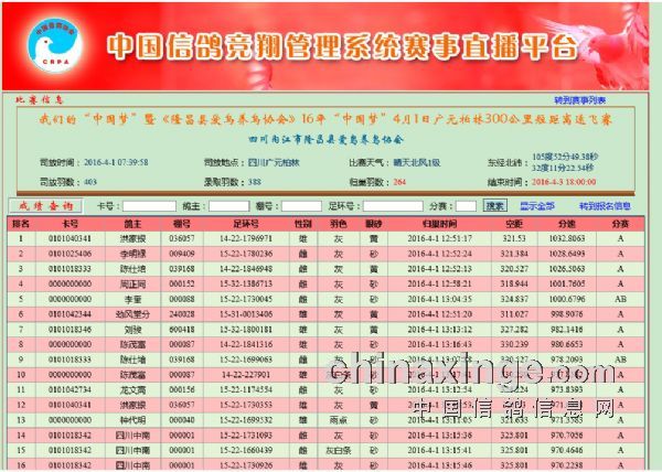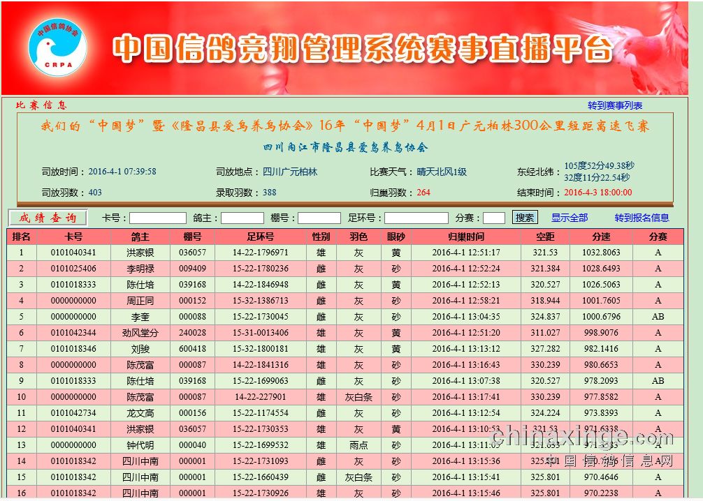 2016年“中国梦”系列活动之广元柏林300公里级赛鸽短距离速飞赛 成绩通报!
