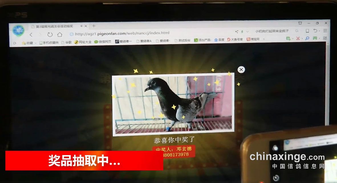 抽奖活动将现场气氛推向又一个高潮,32件奖品通过抽奖的形式奉送到各位鸽友手中,奖品包括种鸽、智能喂食器、赛鸽用品用药等。