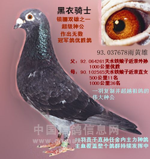 出生于99年7月11日。其父317222三关综合12名,又作出近亲直女天水皇后025714雨斑沙眼雌,获300千米,500千米,700公里三个冠军。继而父女配,作出新一代大名鼎鼎的种精神母038。