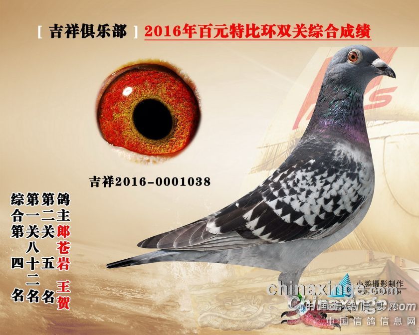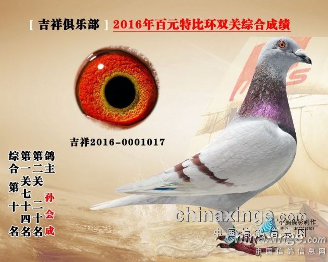吉祥赛鸽俱乐部2016年秋季百元特比环前十名欣赏