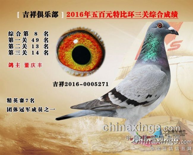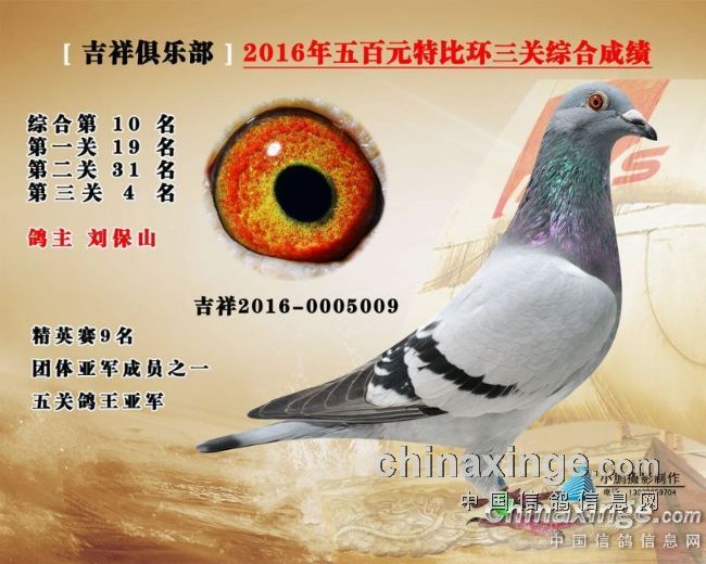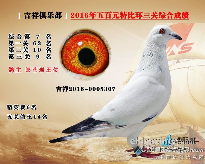 吉祥赛鸽俱乐部2016年秋季伍佰特比环三关综合前十名欣赏(图)