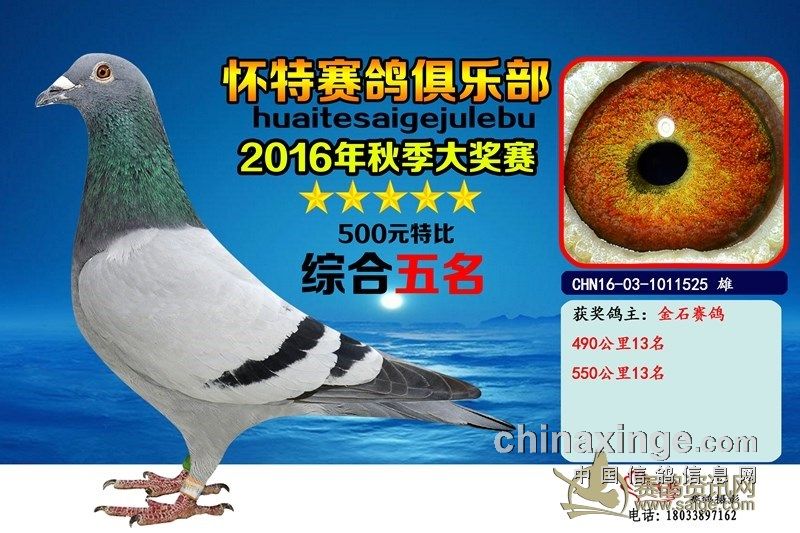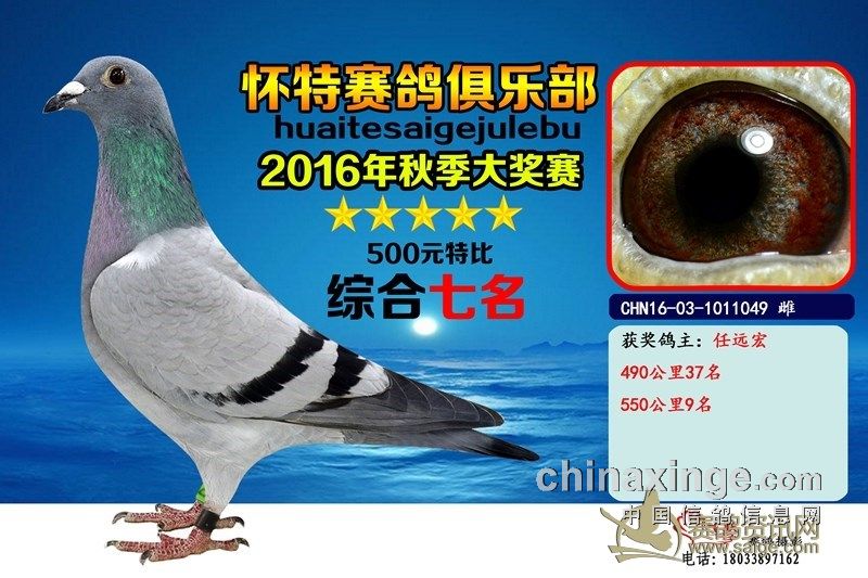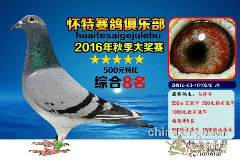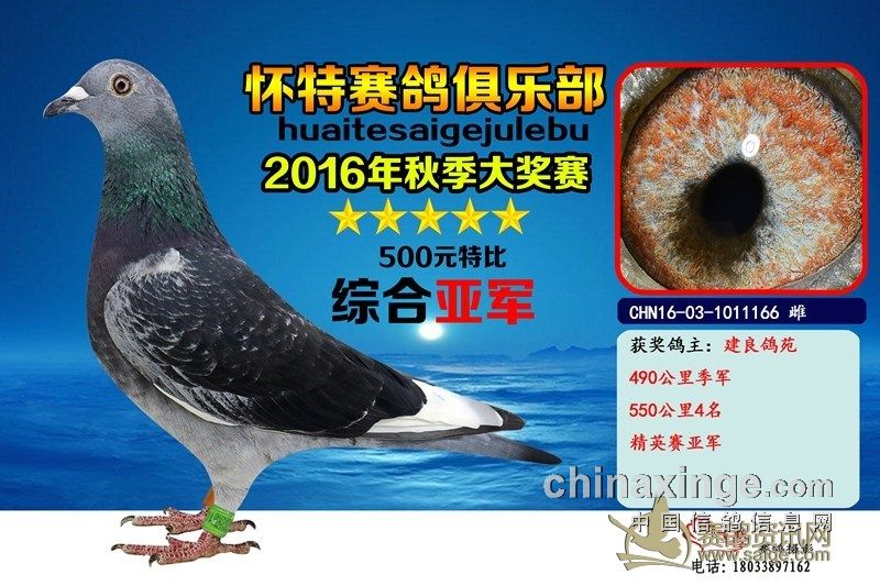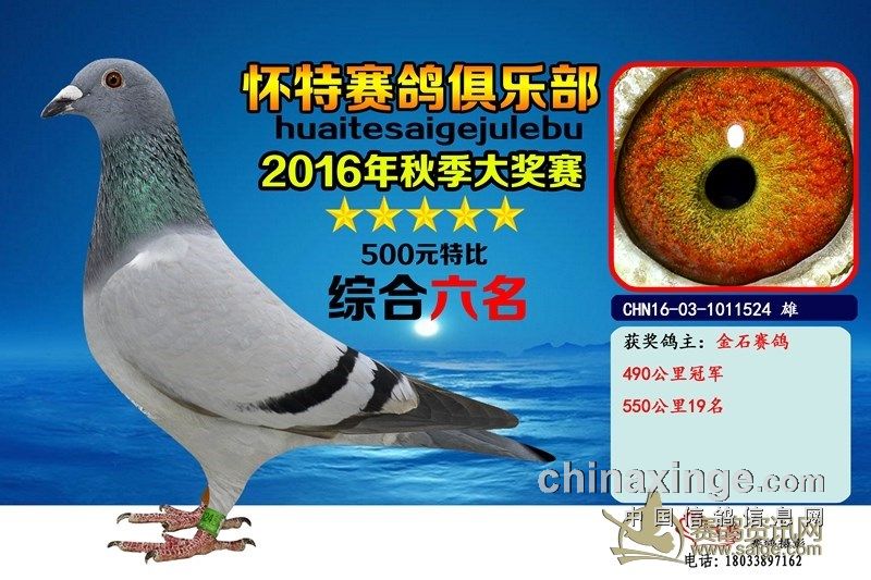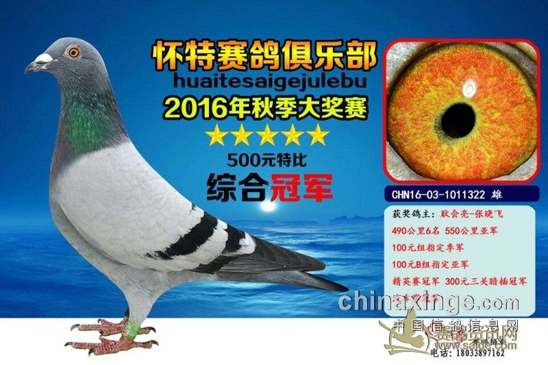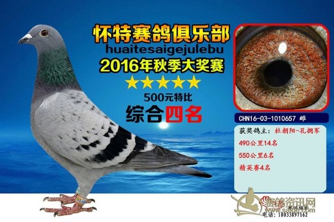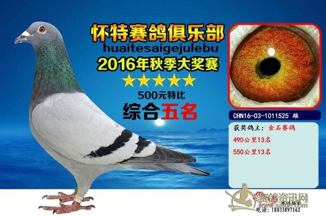 2016年怀特赛鸽俱乐部500元特比综合前十名欣赏(图)