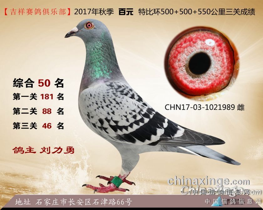 2017年秋季吉祥赛鸽俱乐部百元特比环前50名