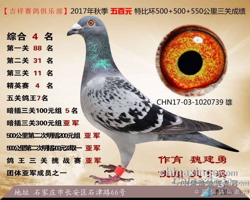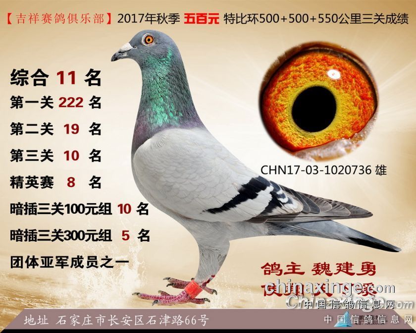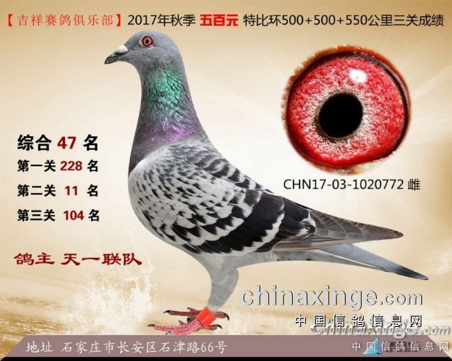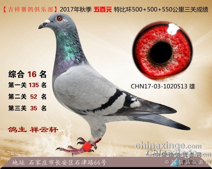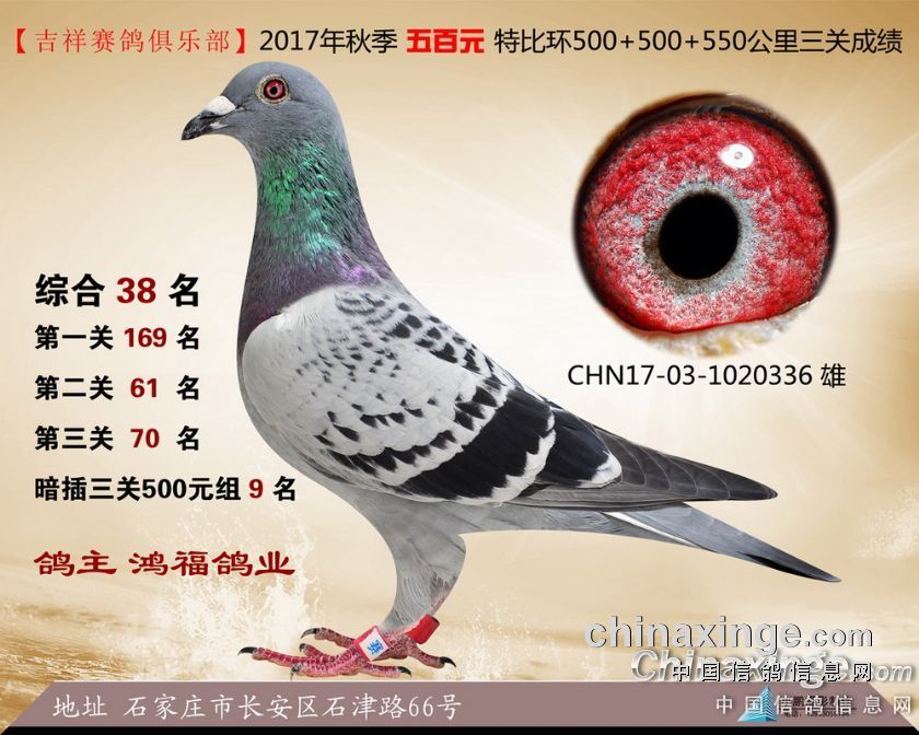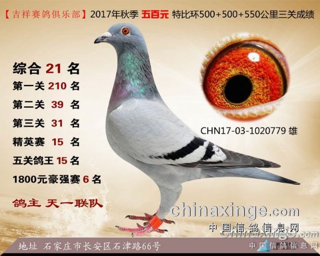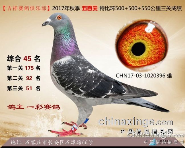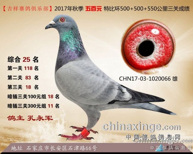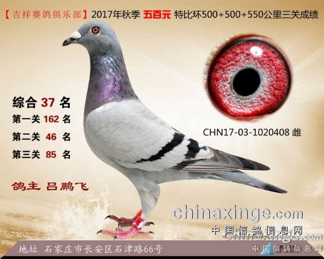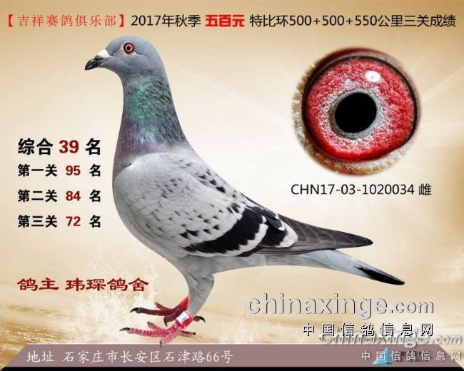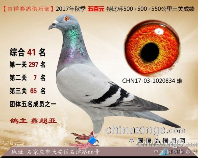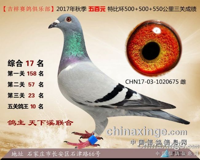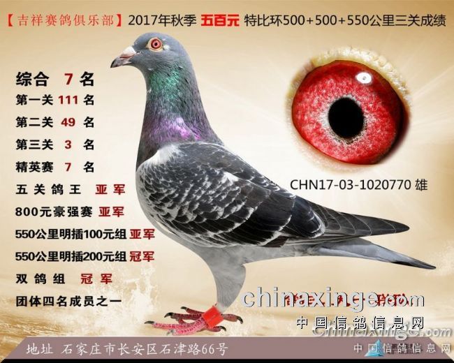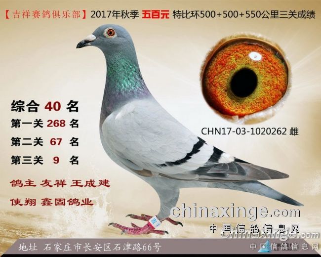 2017年秋季吉祥赛鸽俱乐部五百元特比环获奖鸽