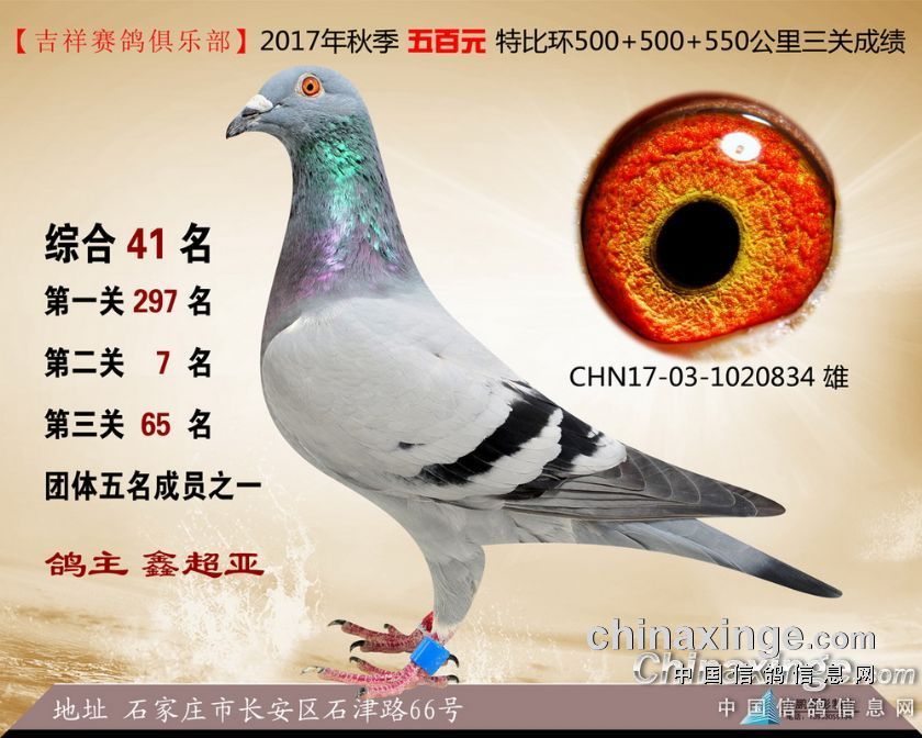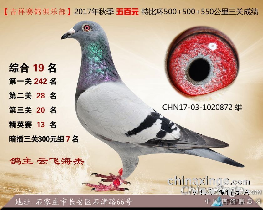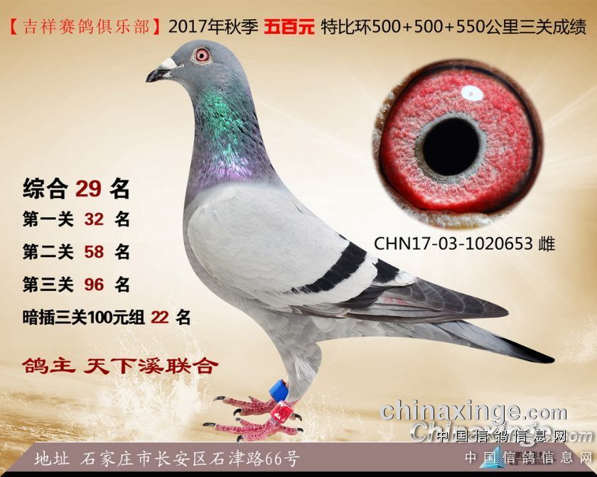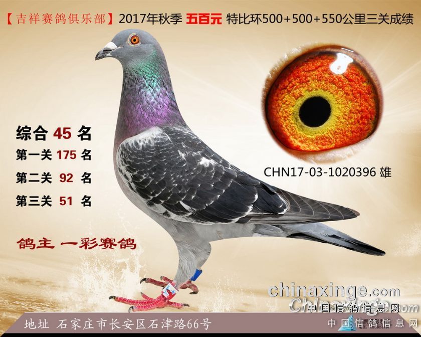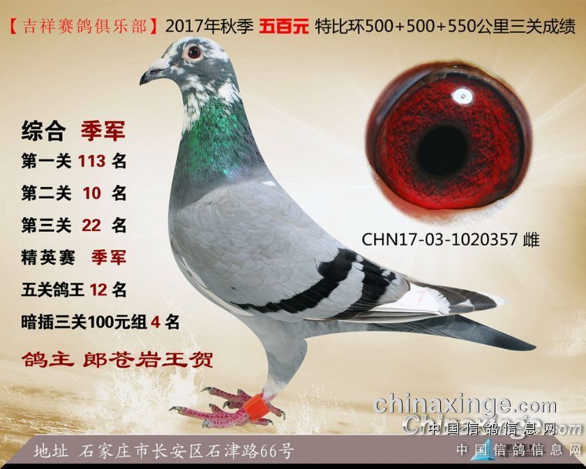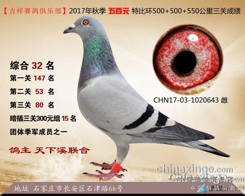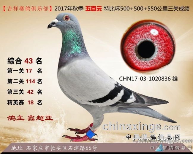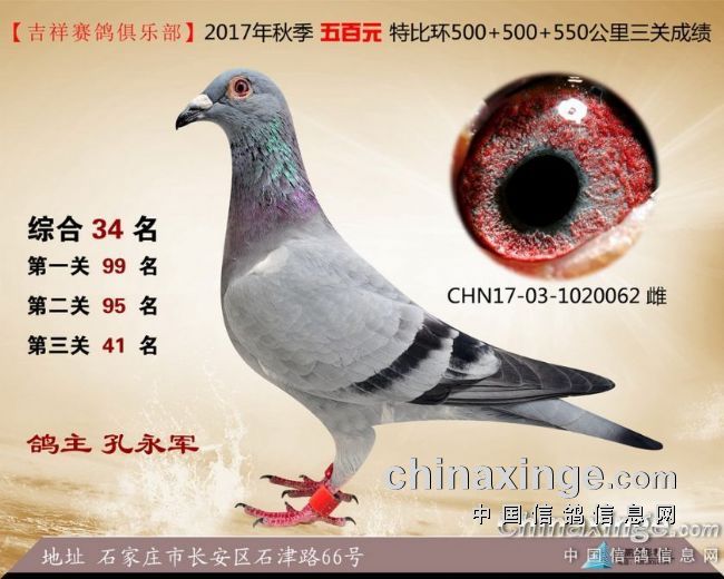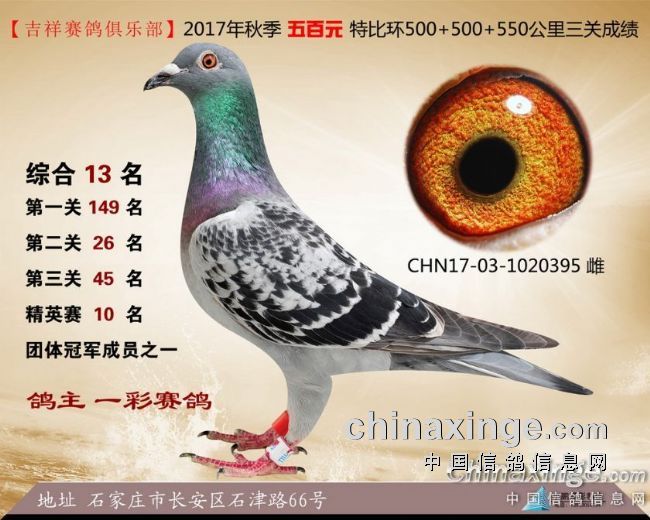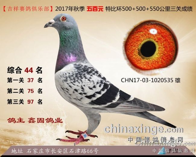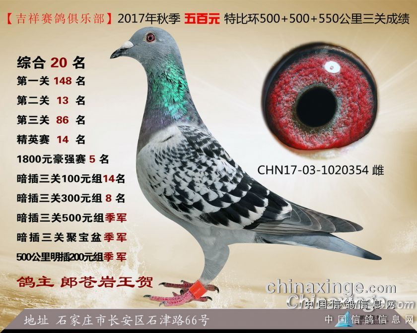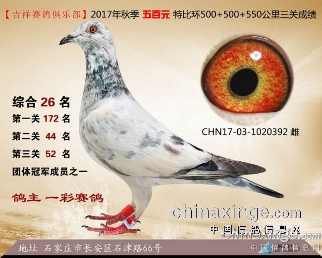 2017年秋季吉祥赛鸽俱乐部五百元特比环获奖鸽