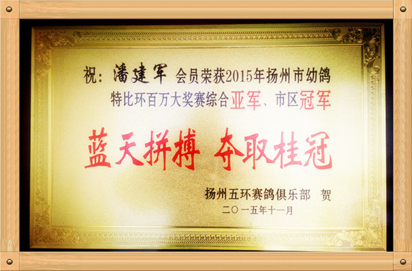 本人自幼喜爱信鸽,是扬州市信鸽协会较早会员。曾获得:扬州郊区信鸽协会500公里比赛前10名进8只、1000公里当日归(此鸽在江苏省翱翔杂志有刊登,省级评比第二名),兰州1500公里亚军等,后由于工作繁忙,舍弃个人爱好,暂停养鸽。现于2010年正式起棚,引进桑杰士,戈马力,詹森019、苍白骑士、穆利门等实战鸽系,愿与广大鸽友交流赛鸽技艺、以鸽会友,分享胜利的喜悦,使我们共同进步,取得更优异的成绩。电话:13270001300 QQ:910044451