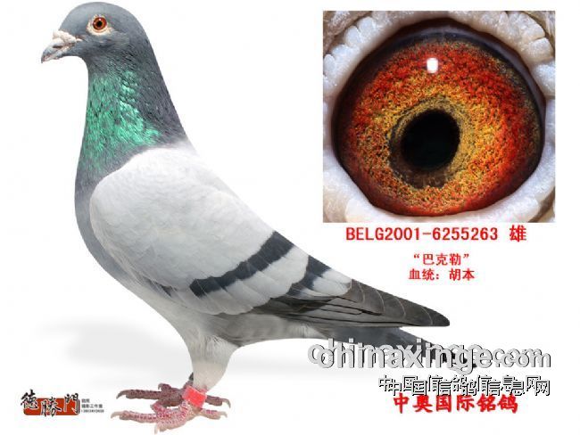世界名鸽“皮诺曹”,环号B98-6210287,深雨点黄眼雄鸽,由胡本作出。世界名鸽“罗宾号”“蒂芬妮”直子,世界著名配对“年轻艺术家”X“小秃头号”直孙,世界名鸽“潘特”第5代。