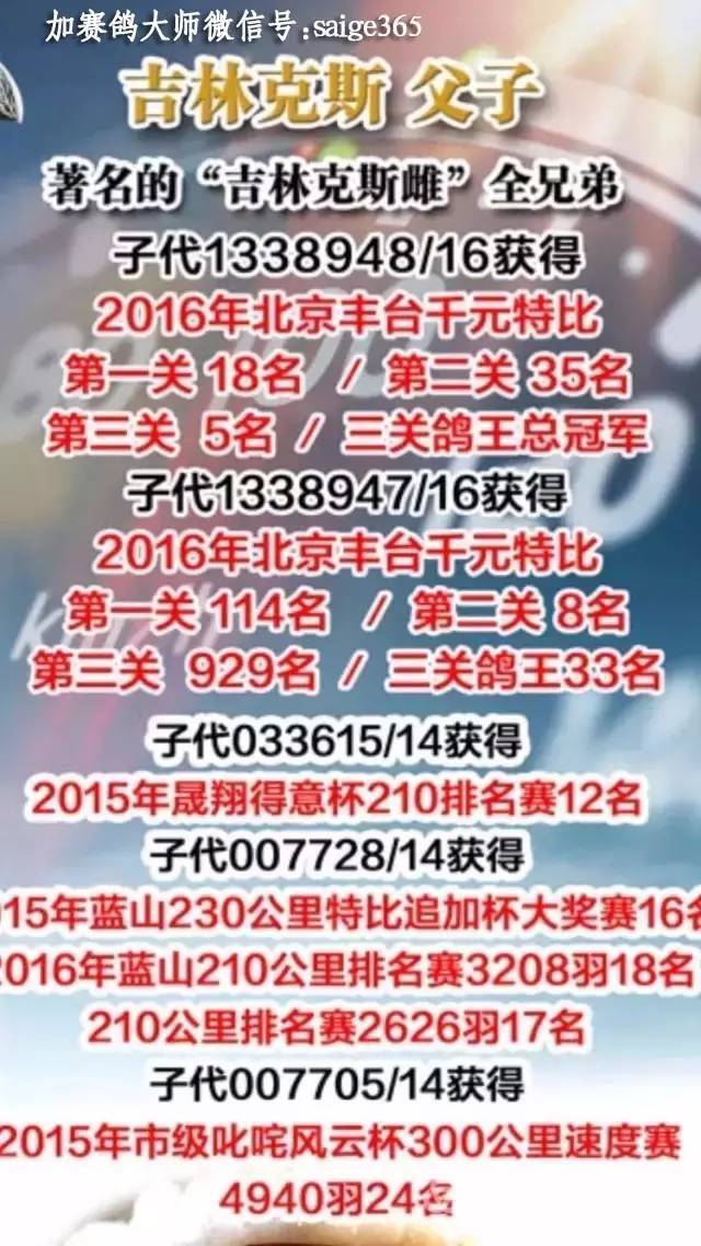四关综合鸽王总冠军之父