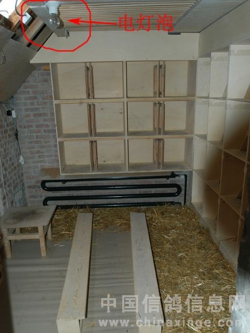 很多鸽友会在鸽舍内装上电灯,已增加鸽舍内的照明时间。但是在选择灯泡的时候,有个问题需要注意——不要用带启动机的条形照明灯。为了保证鸽舍的光亮充足,最好使用普通的电灯泡,而不是用带启动机的条形灯。因为条形灯通常不能提供稳定的灯光,并且灯光的闪烁频率过快,人眼感觉不到,但是鸽子对此却是很敏感。所以最好采用普通的电灯泡,而不是条形灯。
