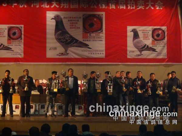 上,著名拍卖师肖雄用一句话赞誉获奖鸽为“走遍大江南