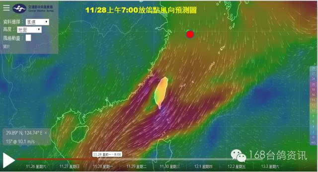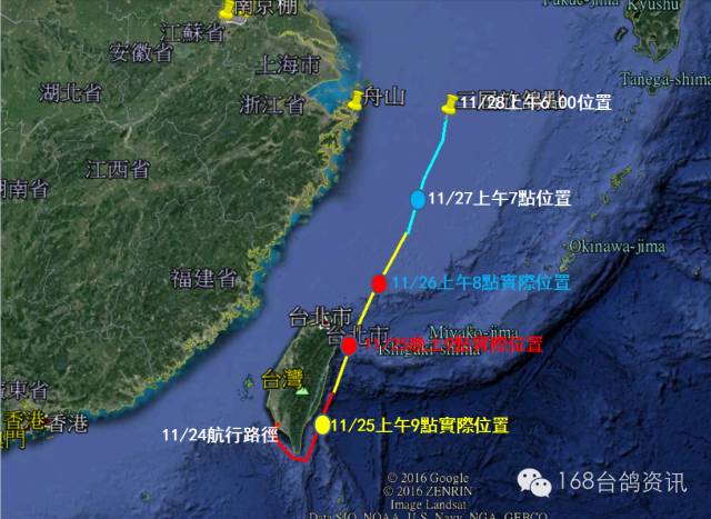 将于11月27号早上7点至7点半、在公海海上放鸽点:东径124度48分51秒,北纬29度48分46秒,同台湾船同时开笼。