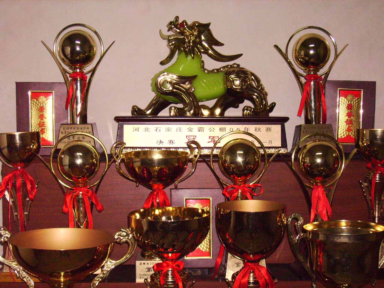 2002年建舍,2003年开始信鸽比赛。 2004年组建定州市海尔赛鸽俱乐部。 ★★★★★公棚赛★★★★★ 2004年秋获得河北金石公棚预赛9名。 2004年秋获得河北金石公棚决赛220名。 2005年秋获得河北金霸公棚决赛冠军。 2005年秋获得河北金霸公棚决赛278名。 2005年秋获得河北金霸公棚决赛团体5名。 2006年秋获得河北万龙公棚决赛132名。 2007年秋获得河北金石公棚决赛488名。 2007年秋获得河北博友公棚决赛252名。` ★★★★★地方赛★★★★★ 2003年秋获得定州市500公里绥中赛4名。 2004年春获得定州市300公里(汤阴)首届海尔杯赛冠军。 2004年春获得定州市300公里汤阴赛亚军。 2004年春获得定州市500公里许昌赛6名。 2004年秋获得定州市300公里丰南赛指定鸽5名。 2004年秋获得定州市500公里绥中赛4名、当日归11羽。 2005年春获得定州市300公里汤阴赛10名。 2005年秋禽流感停赛。 2006年春获得定州市450公里山海关赛4名。 2006年春获得定州市450公里海尔杯大奖赛5名、团体亚军。 2006年春获得定州市700公里明港亚军。 2006年春获得定州市信鸽国家赛冠军。 2006年春获得河北省信鸽国家赛(武汉赛区900公里)季军。 2006年春获得第七届信鸽国家赛北赛线900公里第24名。 2006年秋获得定州市300公里汤阴赛34名、65名、71名。 2007年春获得定州市300公里汤阴赛15名、59名。 2007年春获得定州市500公里许昌赛48名、49名。 2007年春获得定州市500公里许昌赛41名、60名。 2007年春获得定州市700公里确山南10名、11名。 2007年秋获得定州市300公里汤阴赛35名、38名、43名、49名、59名、65名。 2007年秋获得定州市500公里许昌赛54名。 2008年春获得定州市300公里濮阳赛31名、34名、47名、80名。 2008年春获得定州市400公里郑州赛29名、57名、71名、73名。 2008年春获得定州市500公里太康赛7名、9名、28名、37名、38名。 2008年春获得定州市700公里确山赛6名、7名、12名、17名。 2008年秋获得定州市500公里平度赛24名、65名。 2008年秋获得定州市500公里平度大奖赛赛14名、38名、54名、56名、69名。 2009年春获得定州市500公里河南太康赛14名。 2009年秋获得定州市500公里山东平度赛冠军。