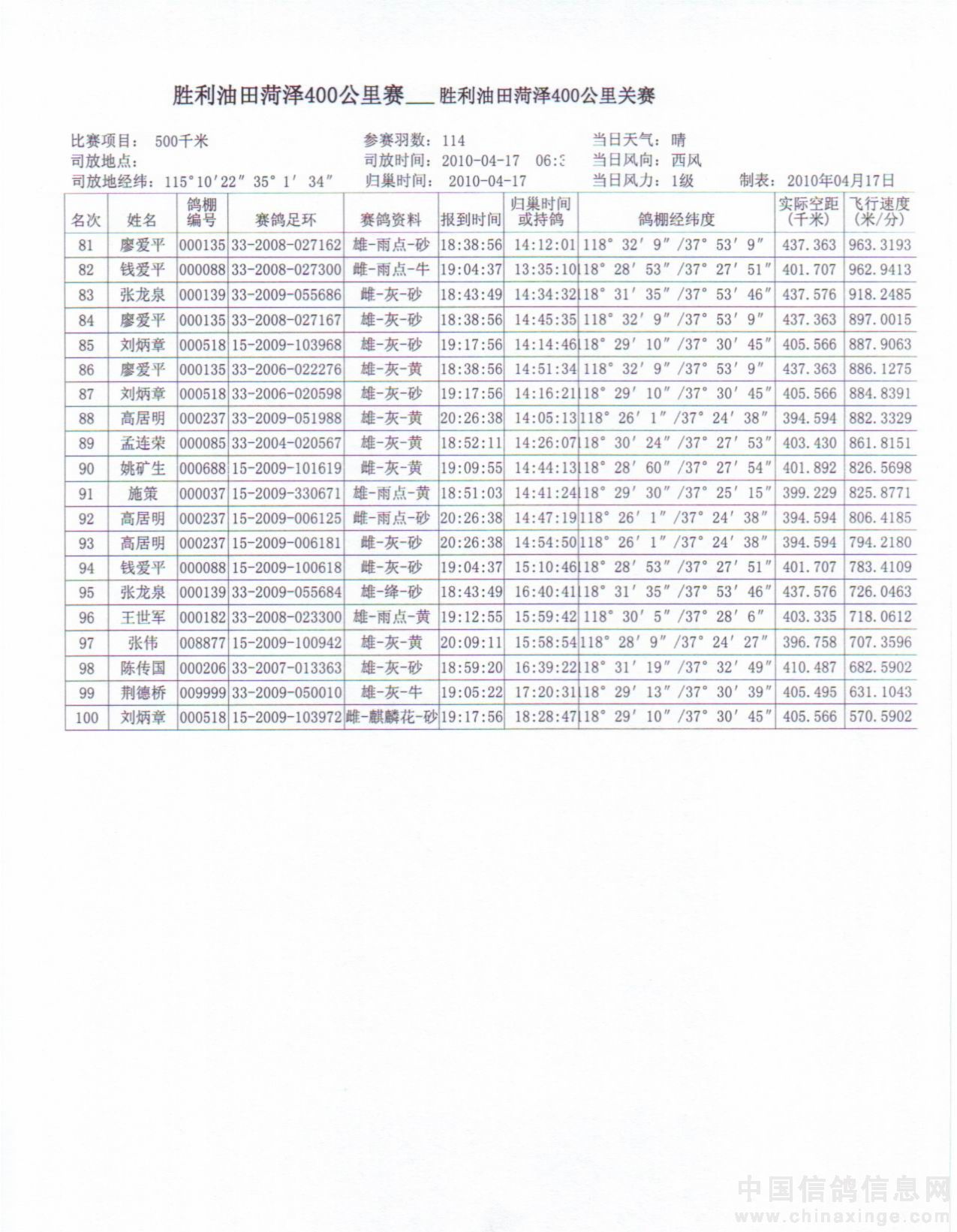 胜利油田菏泽400公里关赛成绩3