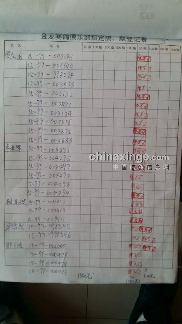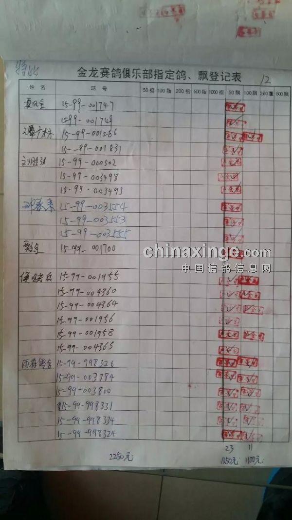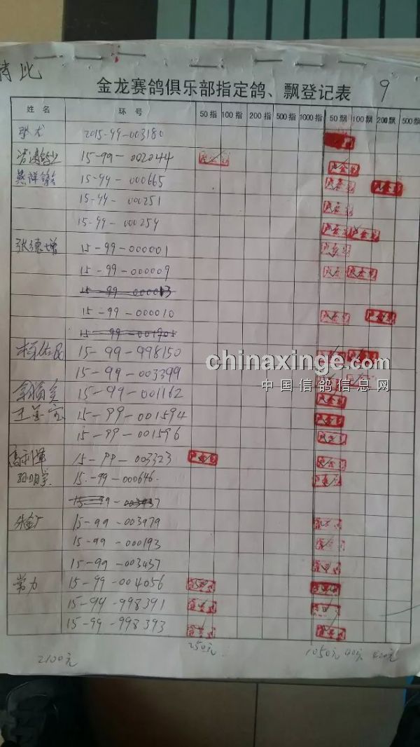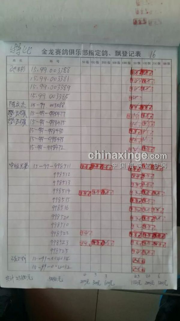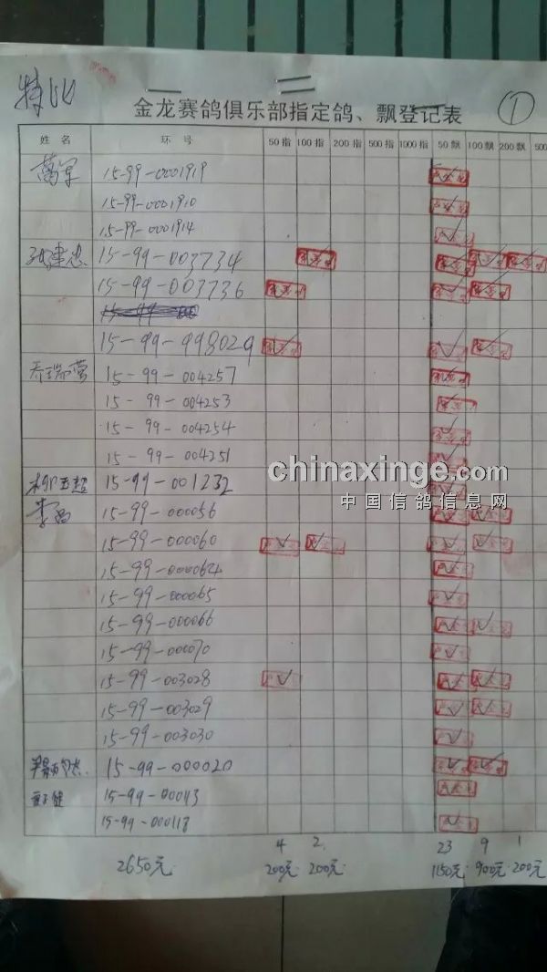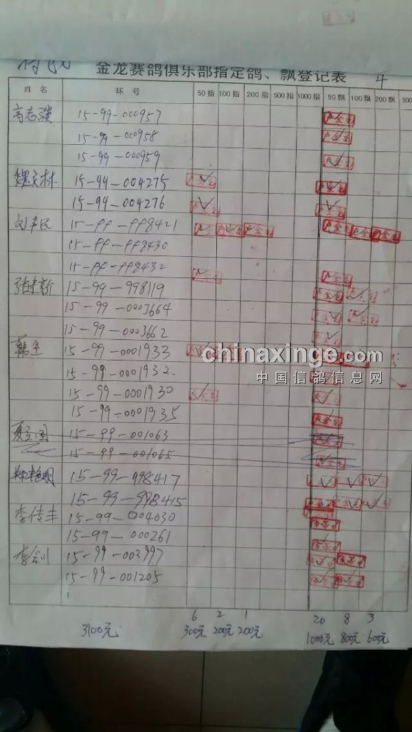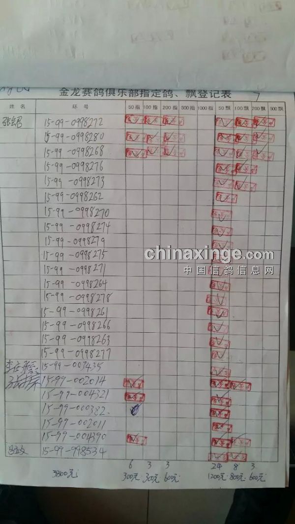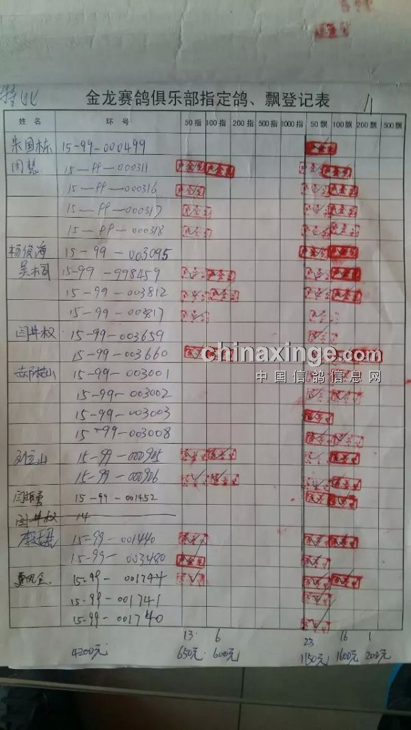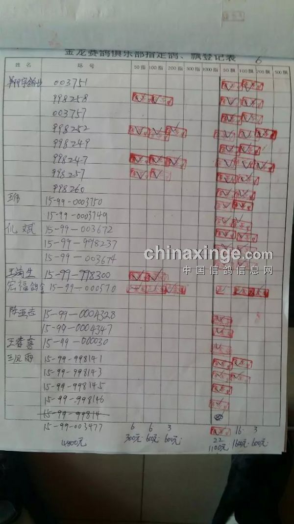 鸽舍赛绩