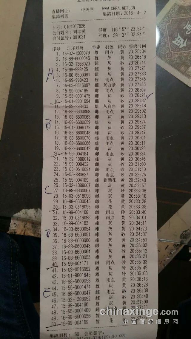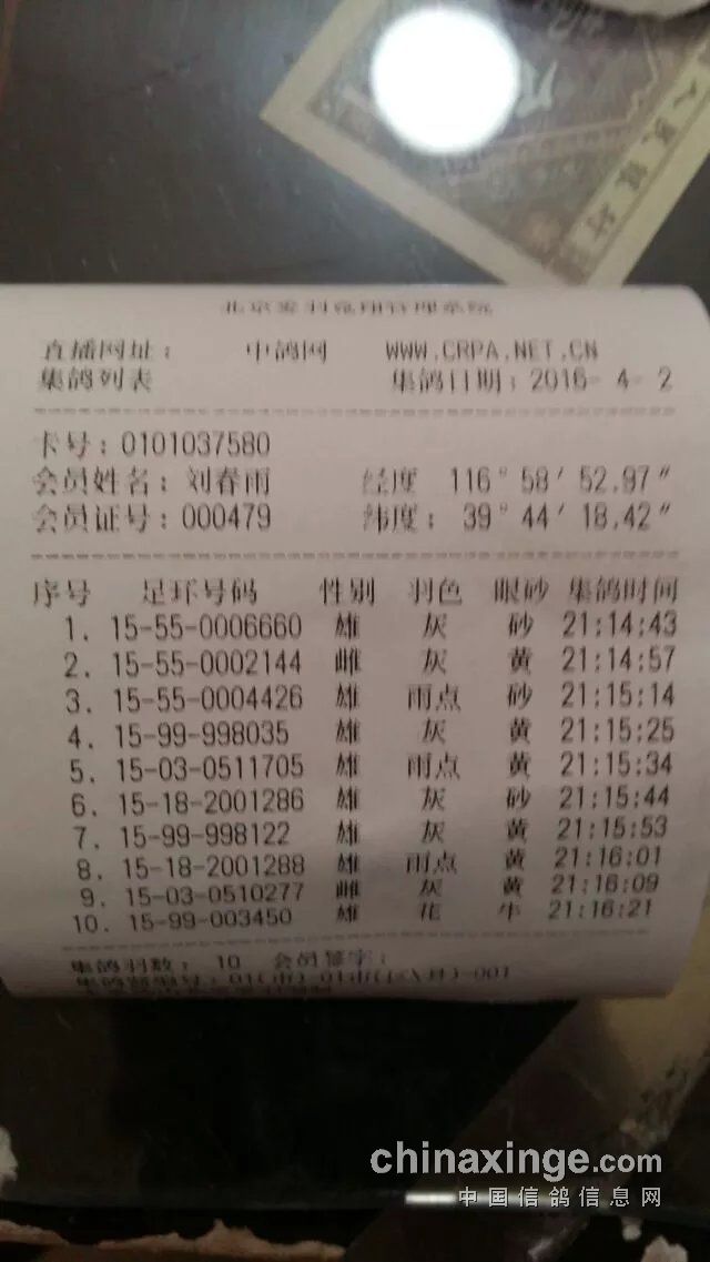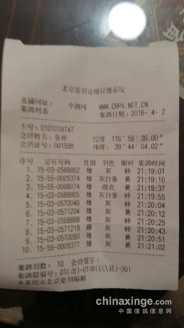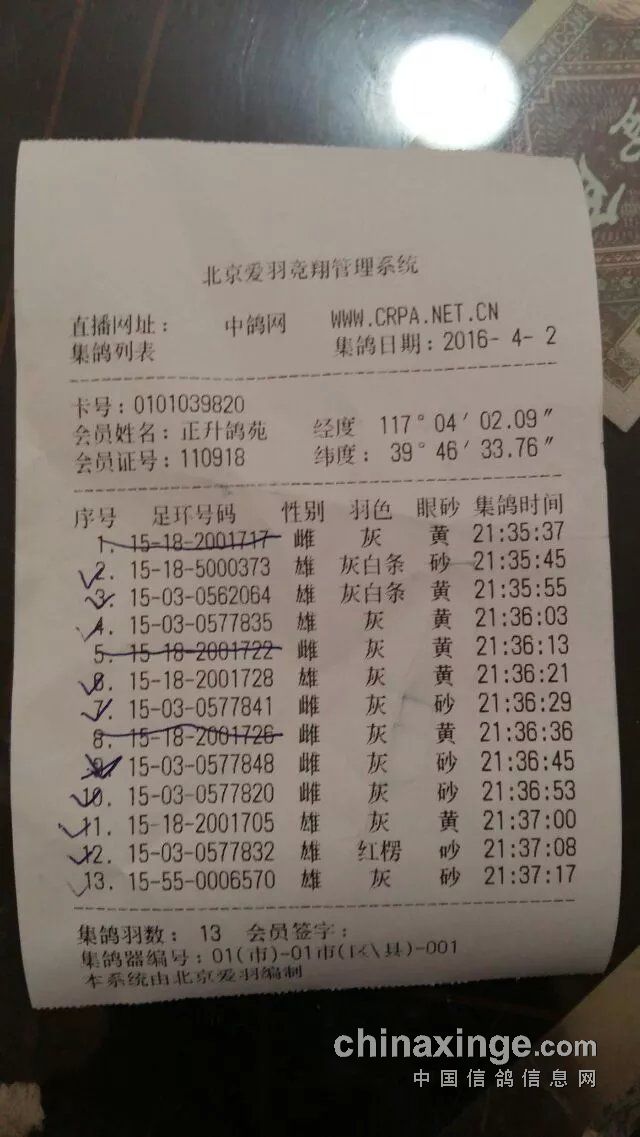 1 正升鸽苑 15-03-0562064 雄 灰白条 黄