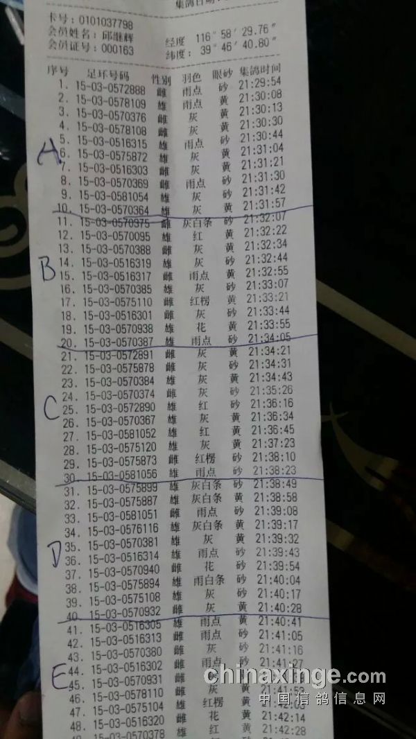78 邱继辉 15-03-0578108 雌 灰 黄 A