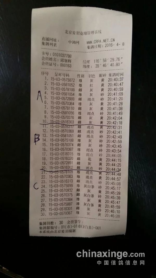 9 邱继辉 15-03-0570374 雌 灰 砂 B