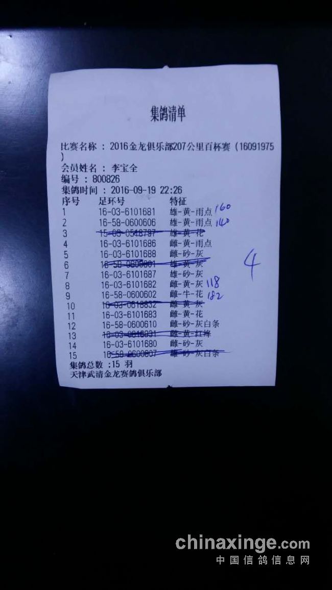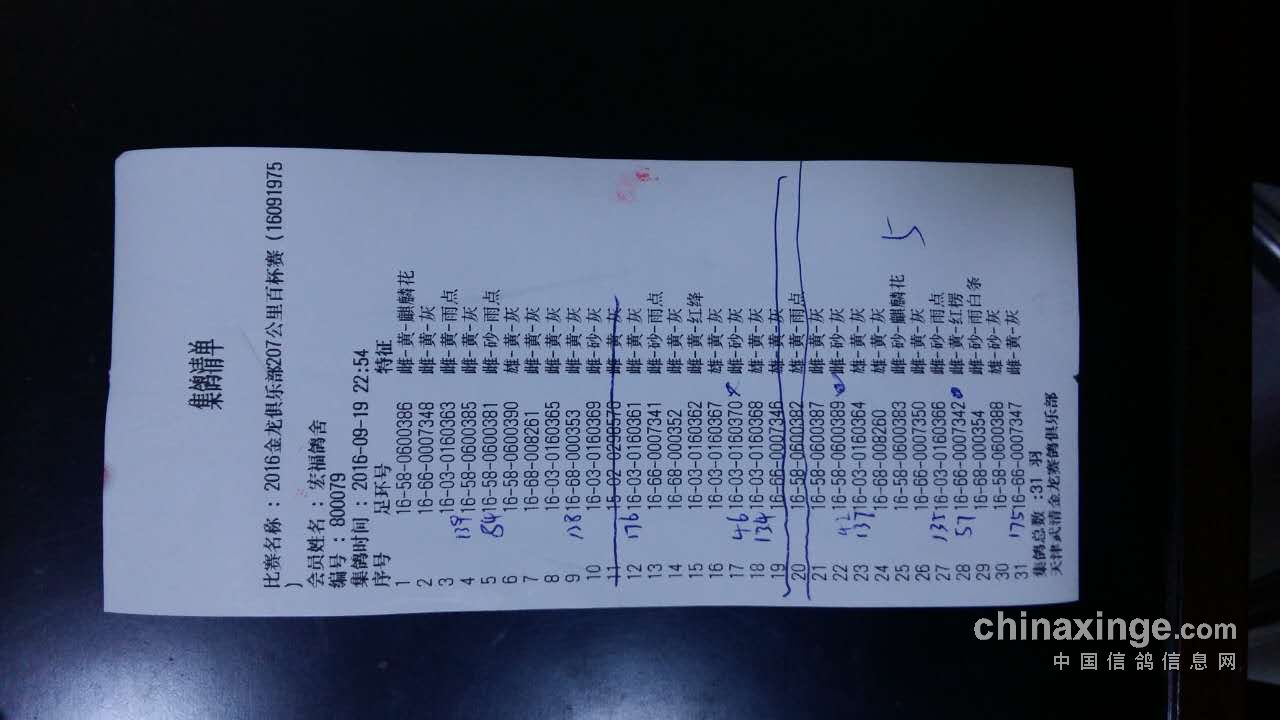 季军:宏福鸽舍 A组4羽,最好成绩42名