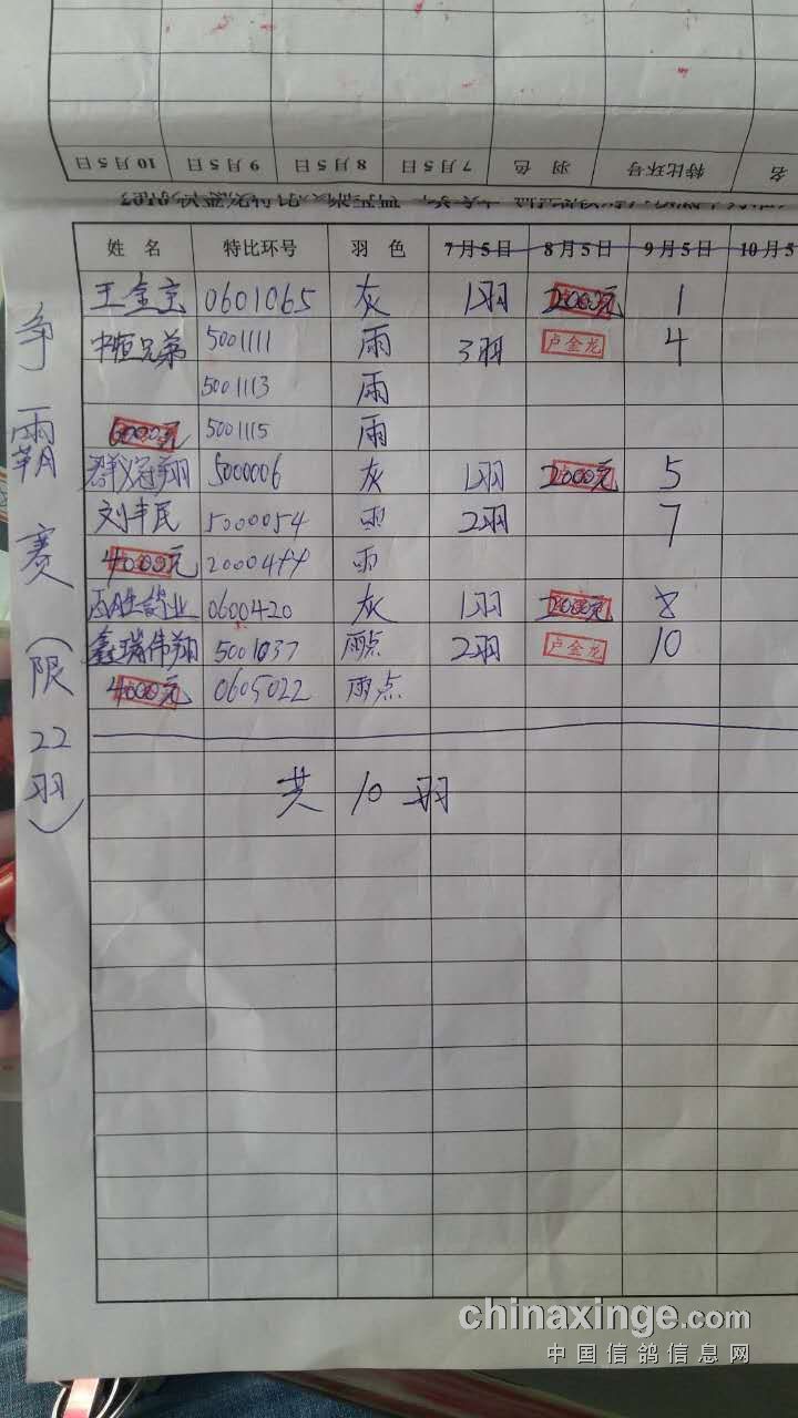 共计10羽 冠军;18000元