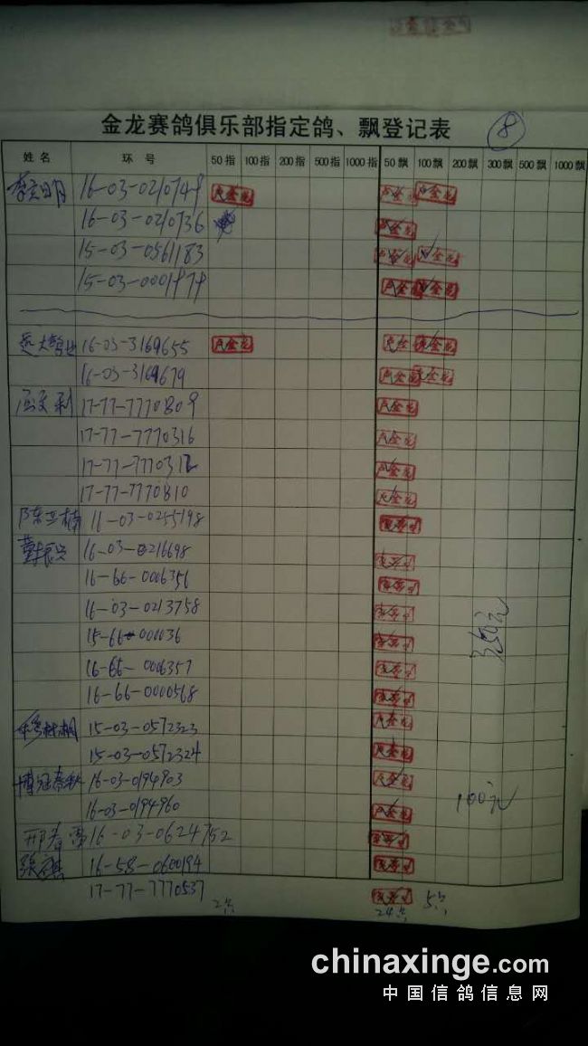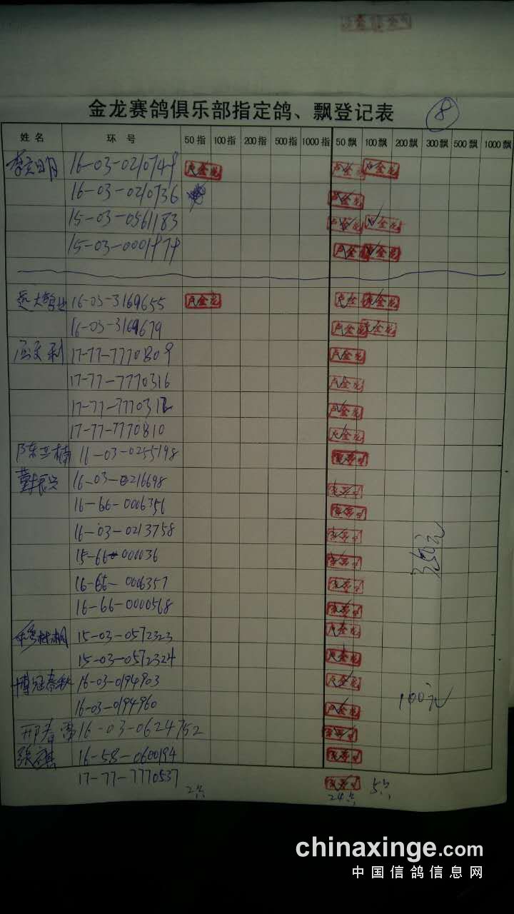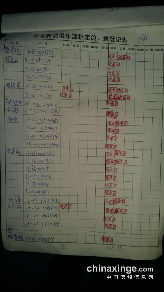 鸽舍赛绩