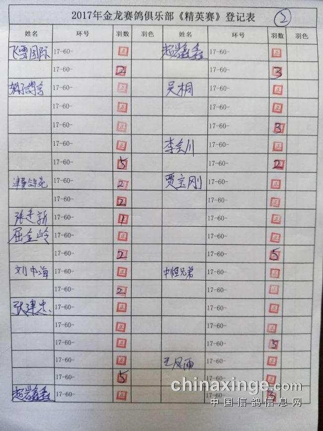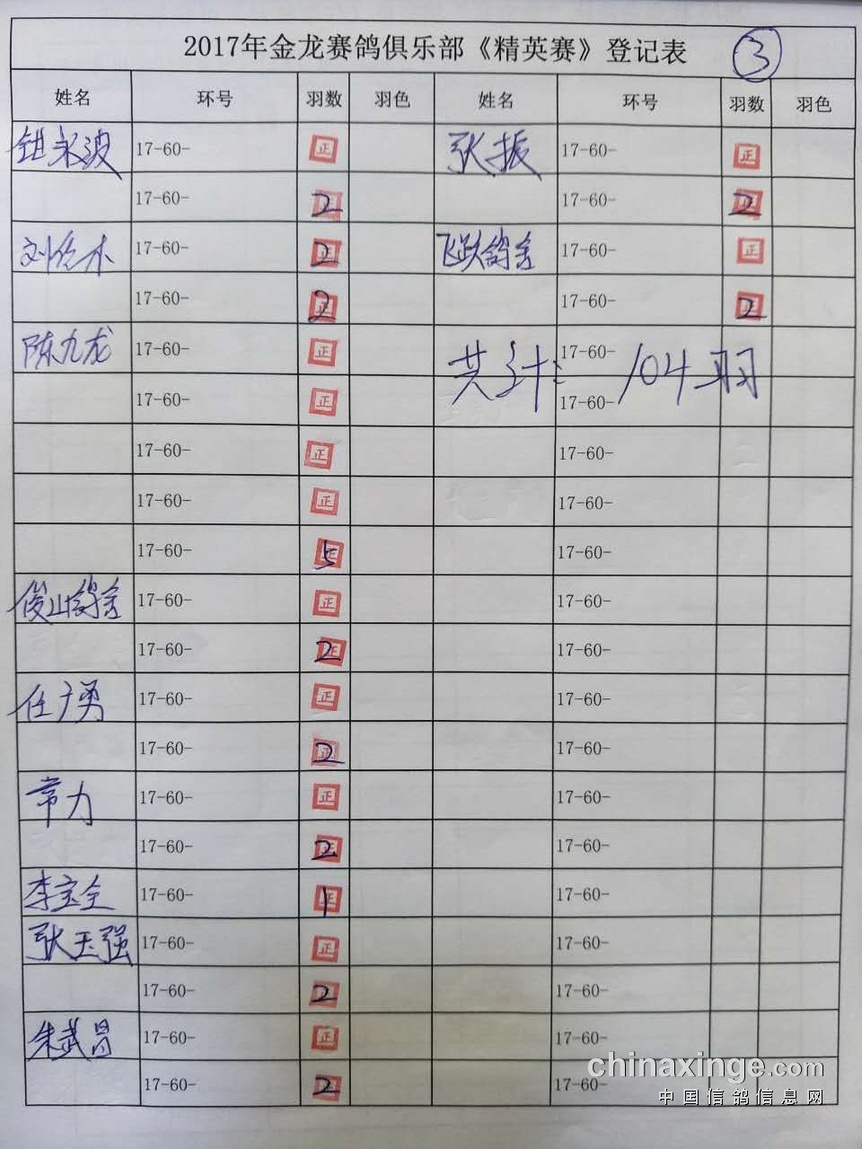 精英赛共计参赛 104羽 不足220羽,按原规程奖金重新分配如下;