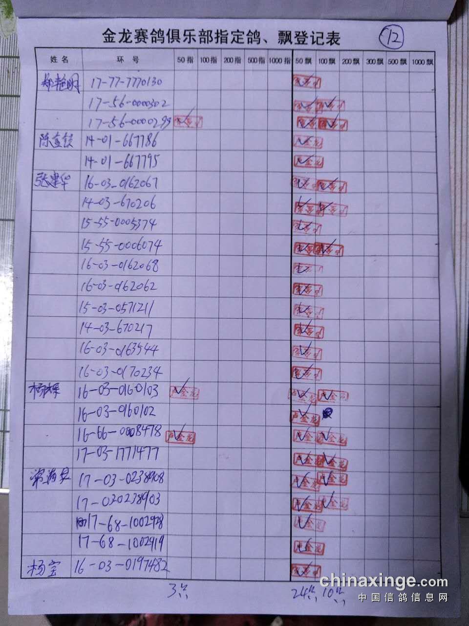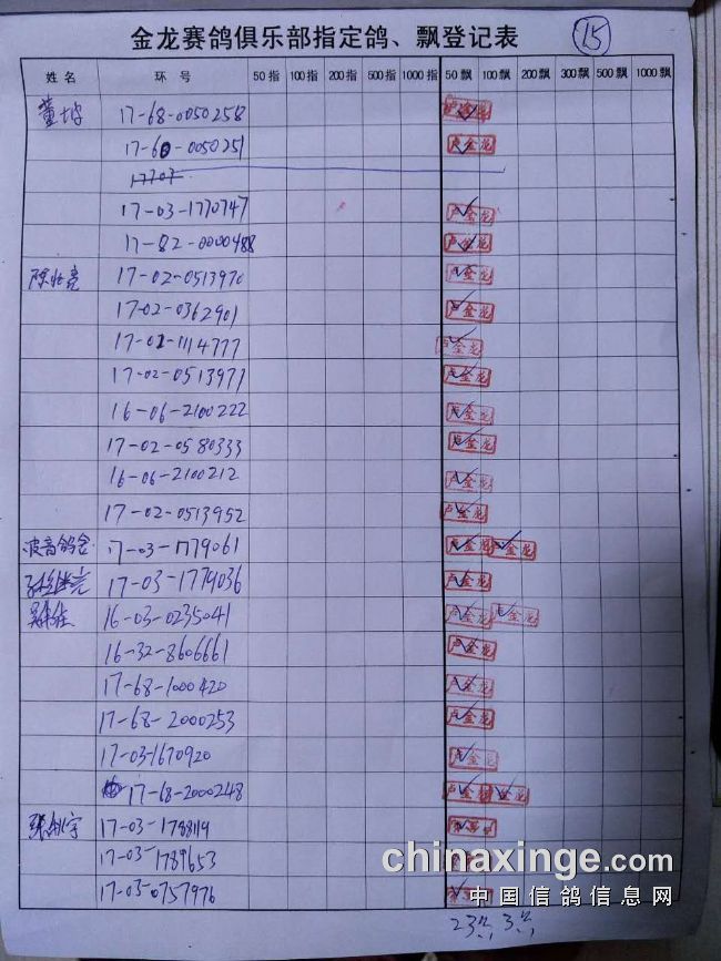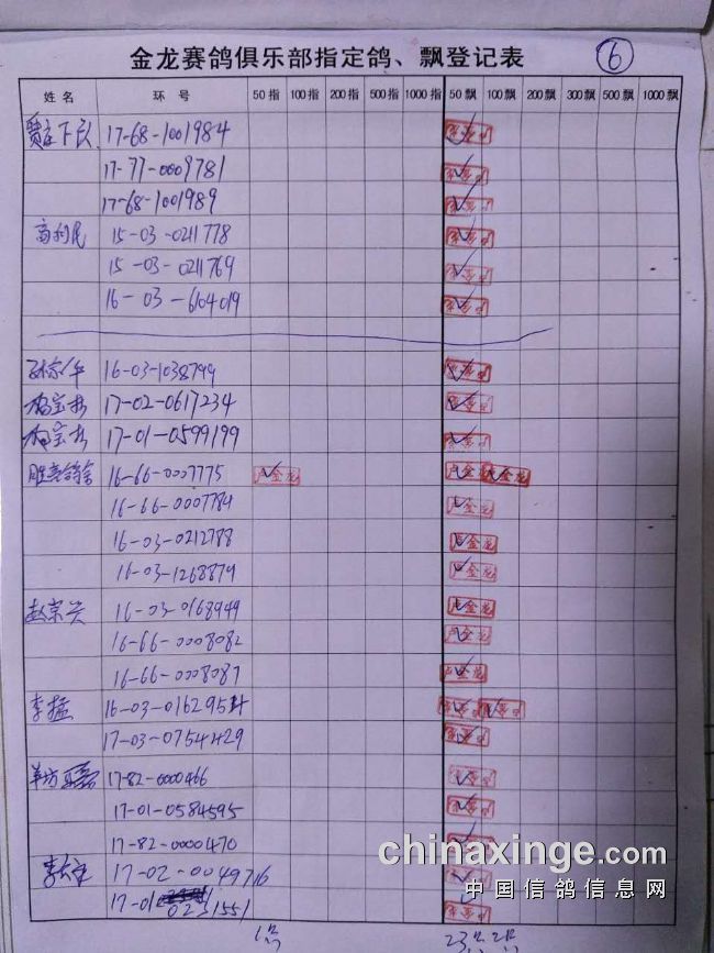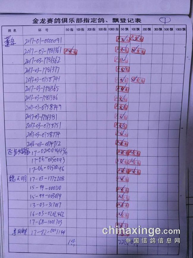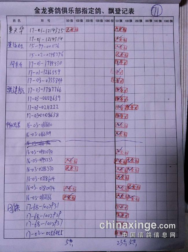 鸽舍赛绩