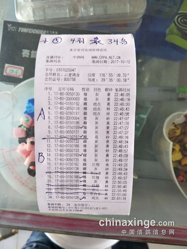 5. 云意鸽舍 B组入围4羽 最好34名