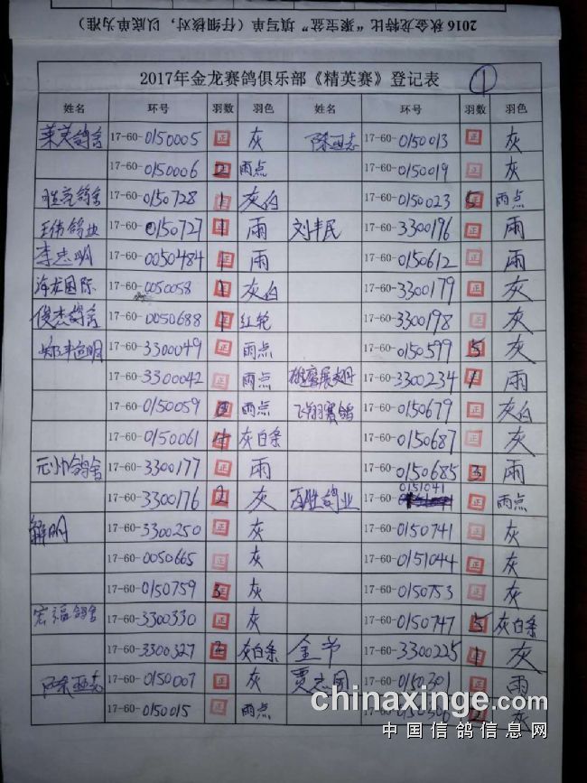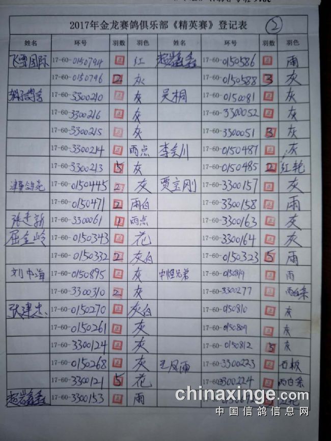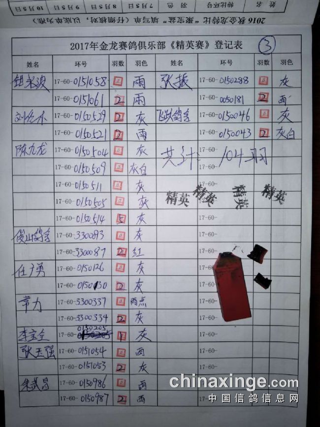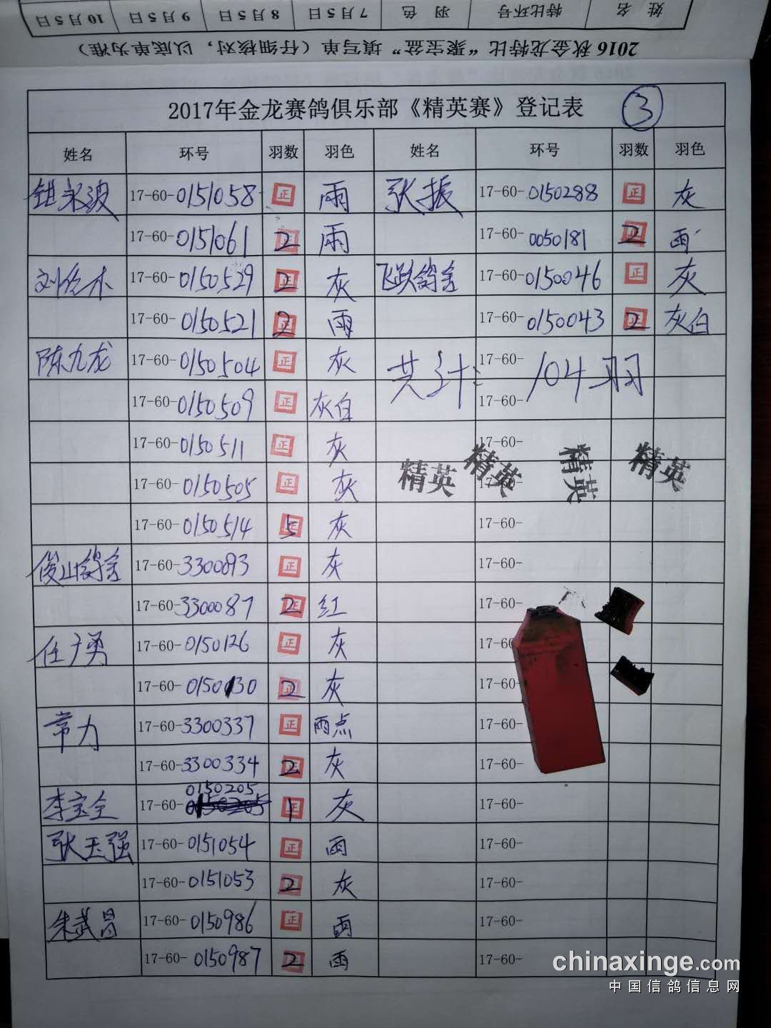2017秋“精英赛”参赛环号!