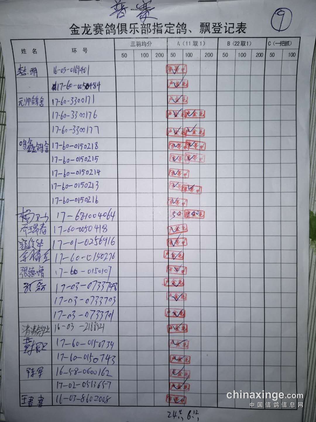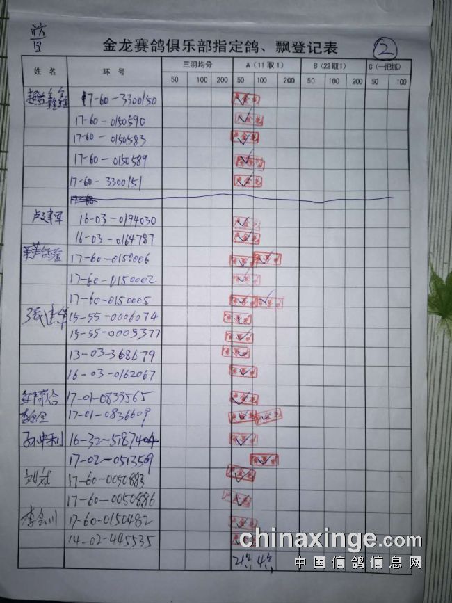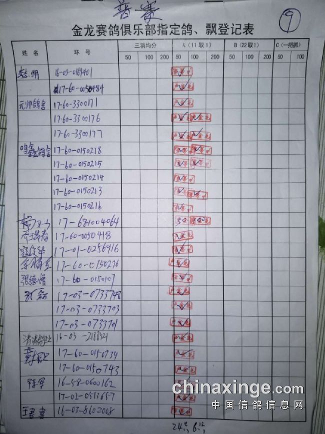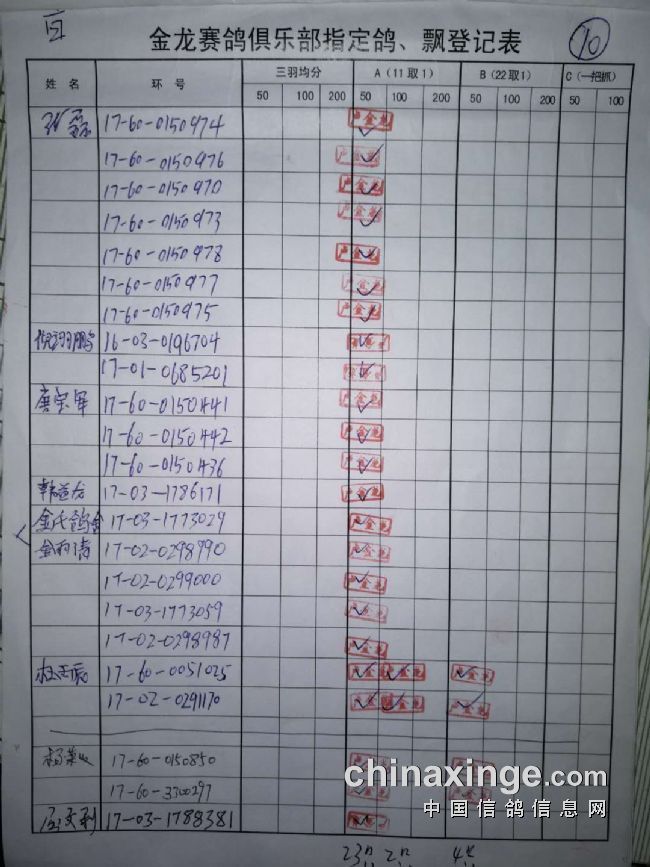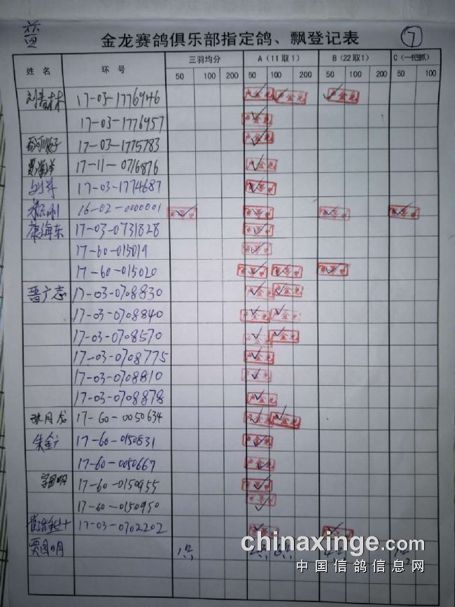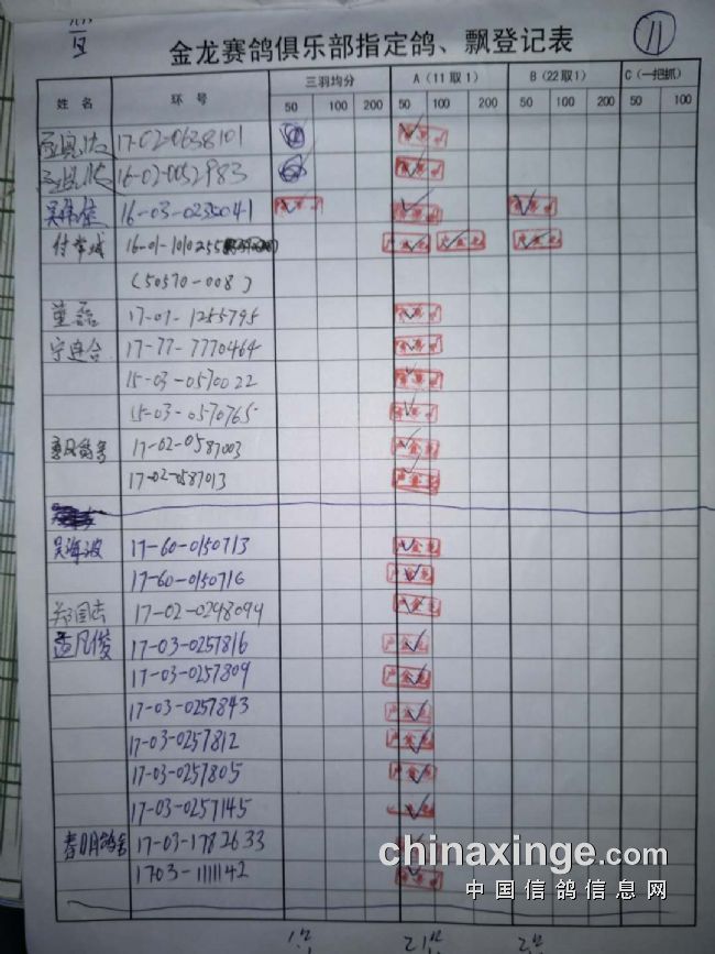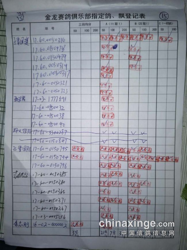 500公里普赛指定鸽原件