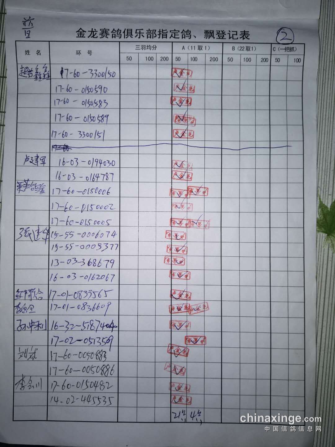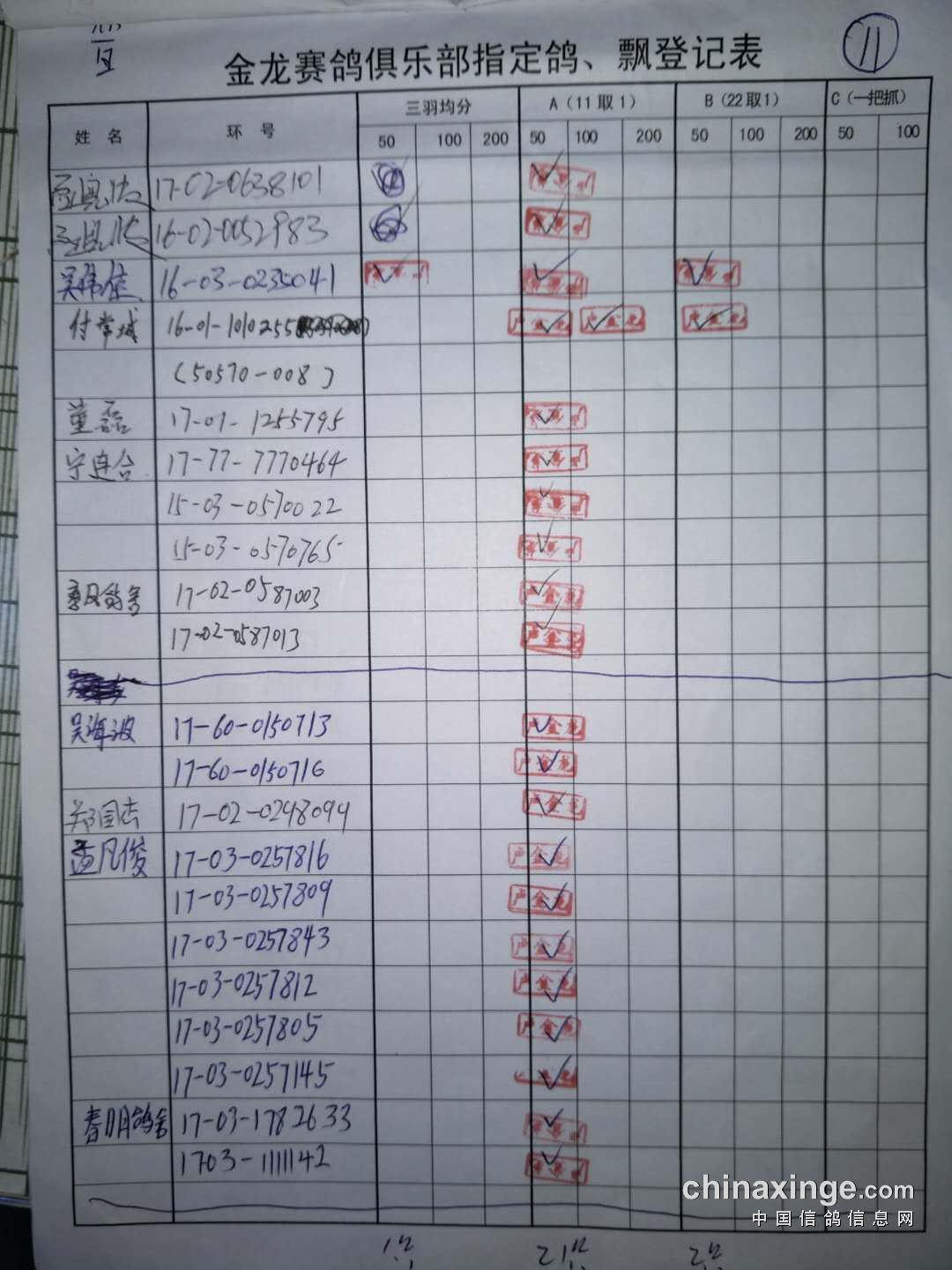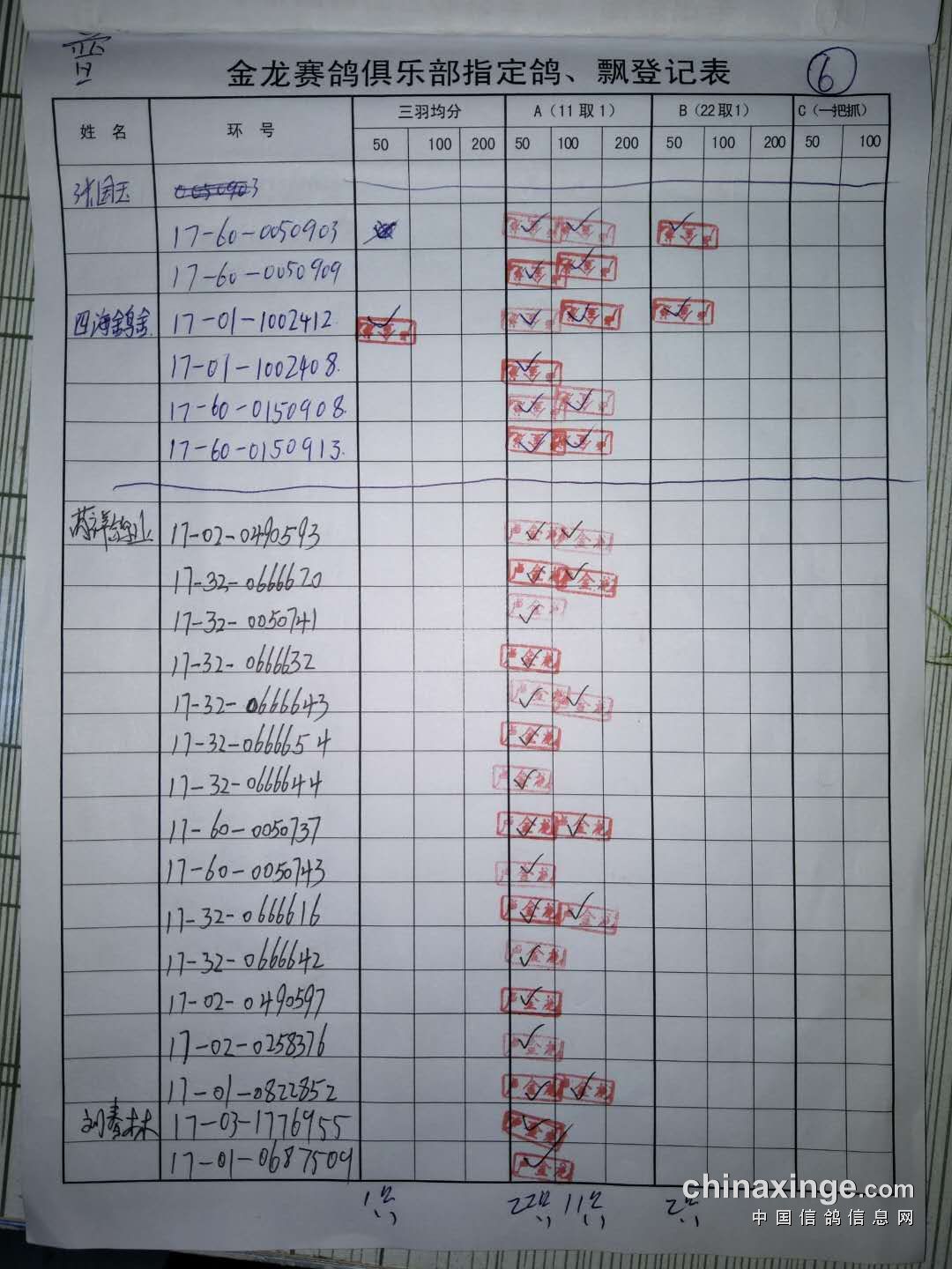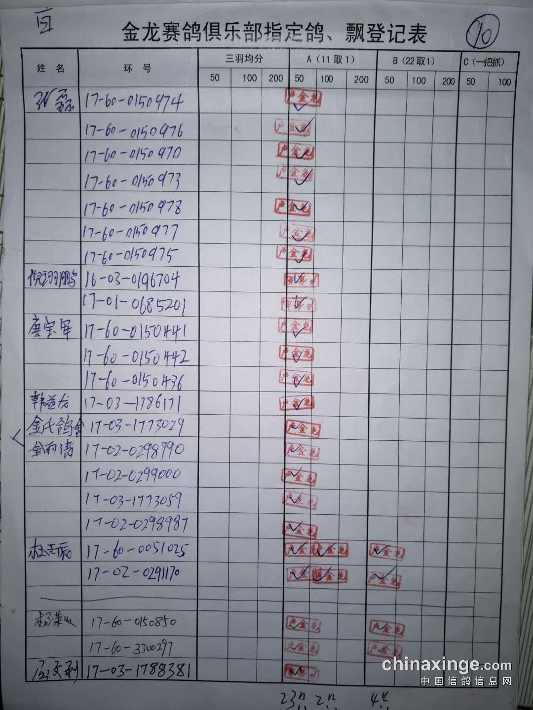 500公里普赛指定鸽原件